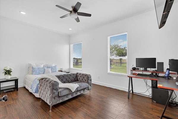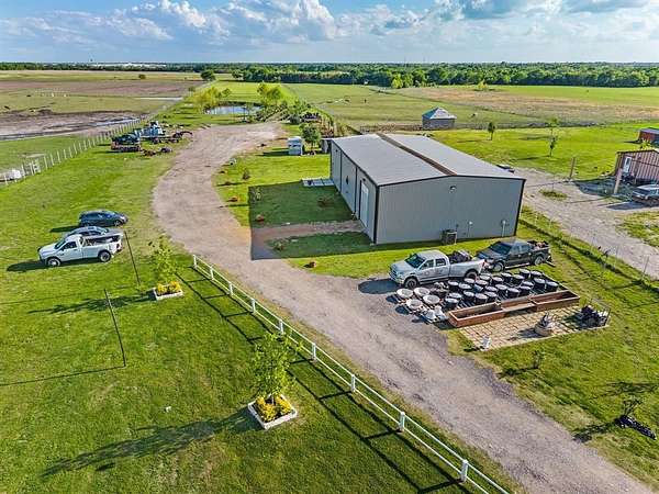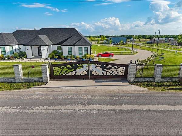 Welcome to your private slice of Texas paradise—this stunning new construction home sits on seven picturesque acres, offering the perfect balance of modern comfort and peaceful country living. From the moment you arrive, you’re greeted by a grand horse art wrought iron gate, setting the tone for the privacy and elegance found throughout the property. The beautifully designed home features an open-concept layout, stylish finishes, and abundant natural light, creating a warm and inviting atmosphere ideal for both everyday living and entertaining. Step outside and take in the scenic surroundings, complete with a tranquil pond that adds both beauty and a sense of serenity to the landscape. Whether you’re enjoying quiet mornings by the water or sunset views across your acreage, this property offers a true retreat from the hustle and bustle. Adding to the versatility is a spacious barndominium—perfect for a workshop, additional storage, guest quarters, or even a future income-producing space. A well-equipped chicken coop is already in place, making it easy to embrace a hobby farm lifestyle. With plenty of room to roam, garden, or bring your animals, this property is ideal for those seeking space, functionality, and modern design—all in one exceptional package. NO HOA! Primary house is 2998 square ft. - Barndominium living square footage 967 - Metal out building square footage 2,680. Transformer stays with the property, powers up to five properties. Book your showing today!