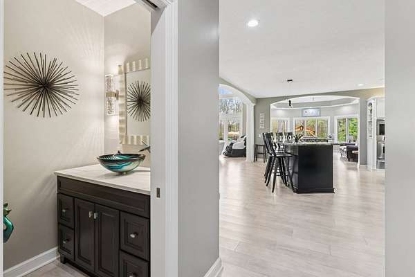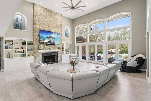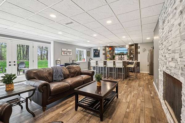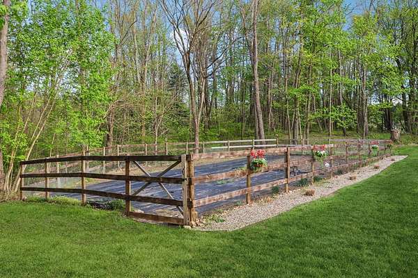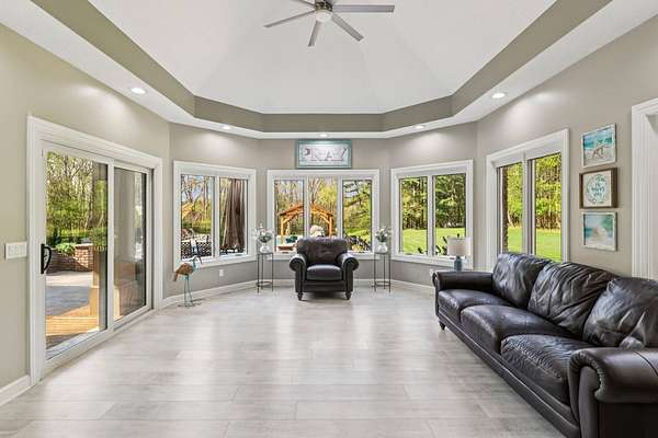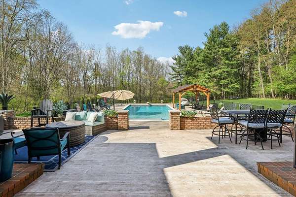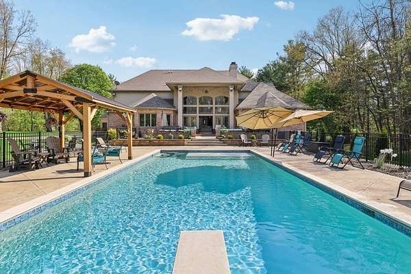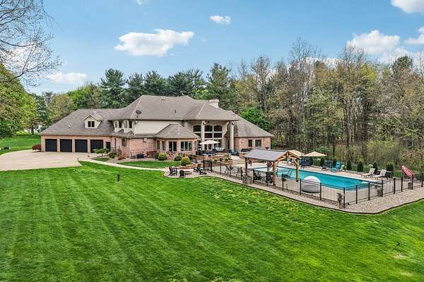Initial in-person viewing begins April 29 at scheduled open houses, with private showings available starting May 3. Full general home inspection, septic, well, and radon testing, along with a third-party appraisal, have been completed and are available upon request. There is an offer deadline of 8 pm on May 5. Sellers reserve the right to accept an offer prior to the deadline. Welcome to this exceptional brick colonial in Uniontown, privately nestled on nearly 5 sprawling acres with a long, winding driveway. This bright and airy home blends timeless elegance with modern updates and an incredible layout for everyday living and entertaining! A grand, 2-story foyer with a curved staircase sets the tone, leading into a formal dining room with a tray ceiling. The handsome office features a built-in desk with shelving, and a window seat for extra storage. The stunning, 2-story great room showcases a stone fireplace flanked by custom built-ins, and a dramatic wall of windows with French doors leading outside. Prepare culinary delights in the custom chef's kitchen, boasting two islands, granite countertops, stainless steel appliances, and extensive cabinetry. Enjoy panoramic backyard views in the vaulted sunroom! There is a large laundry room, mudroom with ample storage space, and a half bath conveniently located. Retreat to the first-floor primary suite with a fireplace, patio access, generous walk-in closet space, and a luxurious bathroom with a spa-like shower, soaking tub, and double vanities. Upstairs, four large bedrooms each offer private en-suite baths. The walk-out lower level is built for entertaining with a wet bar, family room with fireplace, theater, recreation space, and a sixth bedroom suite! Outside, enjoy a resort-style setting with an in-ground pool, expansive patio, pavilion, pond, fenced-in garden, and wooded backdrop - you'll never want to leave! Additional highlights include a heated 4-car attached garage, Green schools, and extensive updates!