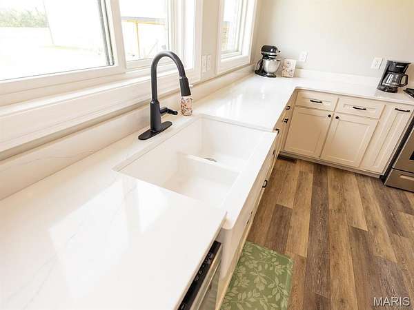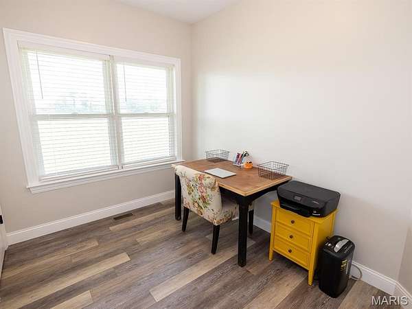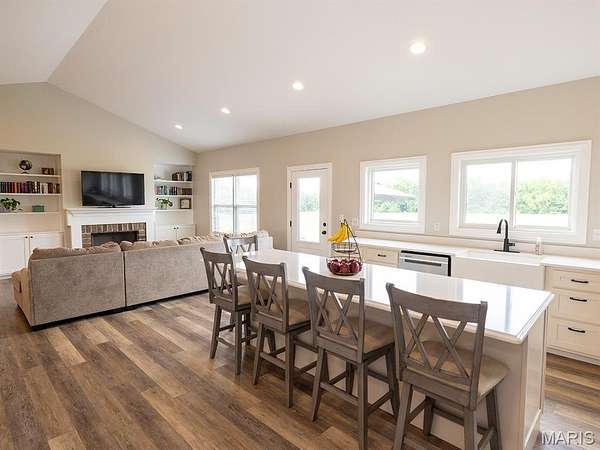 The open-concept main floor features vaulted ceilings, 9-foot ceilings, Andersen windows, numerous builder upgrades, upgraded hard surface flooring, and abundant natural light. The chef’s kitchen boasts custom cabinetry, quartz countertops, upgraded stainless steel appliances, and a large center island, which is perfect for entertaining or family gatherings. The spacious primary suite provides a peaceful retreat with a full bathroom featuring multiple builder upgrades. The home also includes two additional bedrooms, an office, and a sportsman’s closet. With 2.5 baths and a massive 4-car garage, the home offers both comfort and functionality.