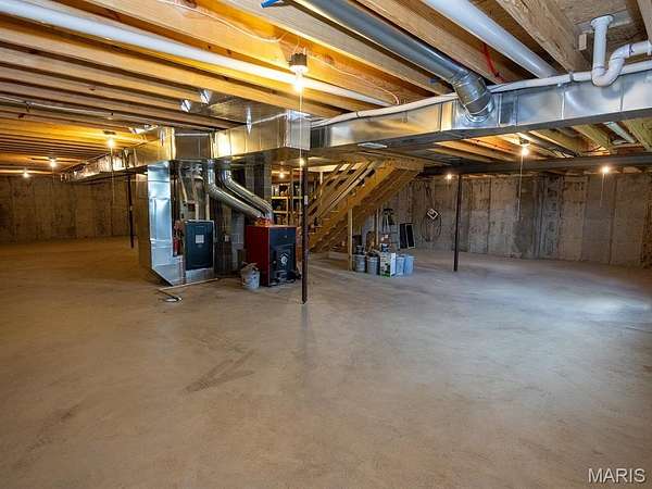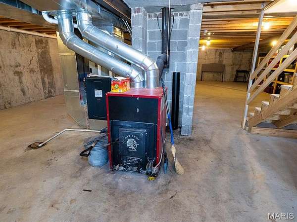Outdoor living includes a cozy patio and a large covered patio connected to a 40x60 partial masonry machine shop. This impressive shop is ideal for equipment storage, hobbies, or a home-based business. The full basement adds efficiency and versatility with an energy-efficient HVAC system and a bonus forced-air wood furnace.
