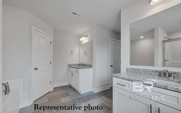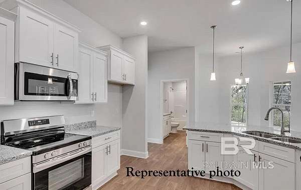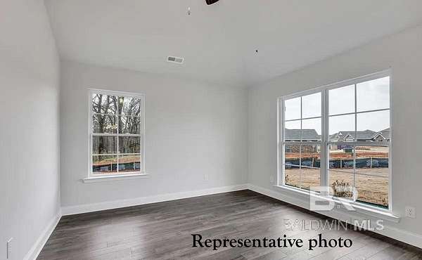 Gold fortified, NO HOA, large lot, private driveway. Experience the perfect blend of modern living and timeless charm in this spacious 4-bedroom, 3-bath, 2,300 sq ft home located in Oak Grove Estates. Nestled on a large, partially wooded lot, this beautifully crafted residence offers convenient access to Mobile, Pensacola, and the stunning Gulf Shores beaches. Additional highlights include a 1-2-10 builder warranty and termite protection for added peace of mind. Some photos are representative and not of the actual home. No representations are made by this floor plan. Photos, finishes, and colors shown are representations of actual materials and may not be an exact match. 10K builder incentive, call for details. Buyer to verify all information during due diligence.