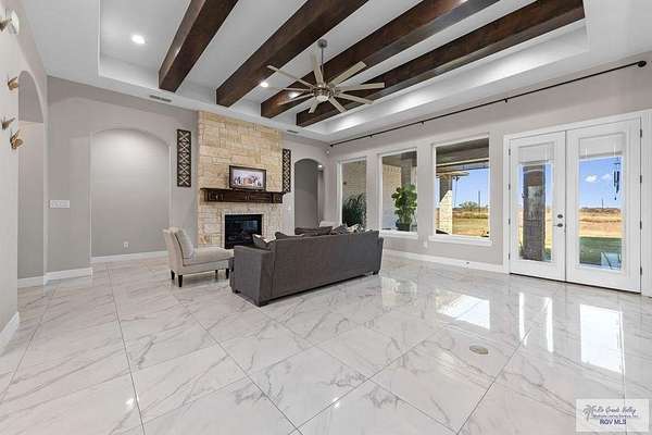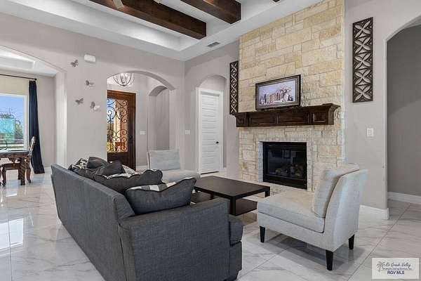 Exquisite Cano Homebuilders home set on nearly 3 acres, offering refined country living with city convenience. This thoughtfully designed home features 4 spacious bedrooms and 3.5 baths, including a private ensuite ideal for guests or multigenerational living, a dedicated office, and a versatile bonus room perfect for a theater or additional flex space. The split floor plan provides both comfort and privacy, while soaring ceilings, tile flooring throughout, and abundant storage enhance everyday living. The chef's kitchen showcases granite countertops and a gas cooktop, opening to a warm and inviting living area with a gas fireplace. Expansive double-pane windows flood the home with natural light, creating a bright and airy atmosphere. Enjoy peaceful surroundings just minutes from schools, dining, and expressway access. Schedule your showing today!