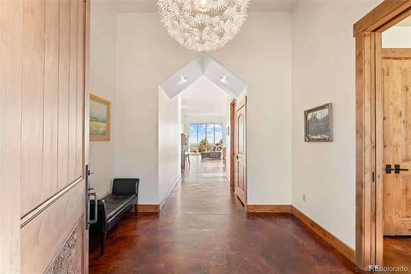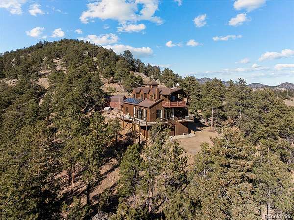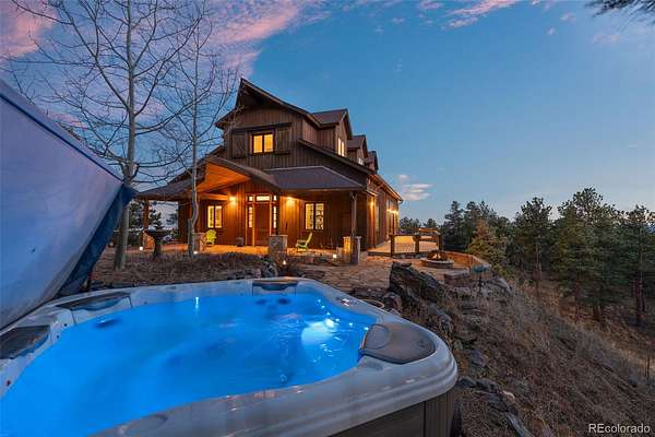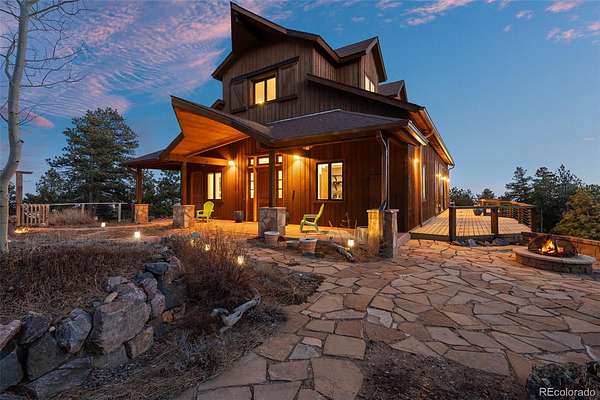 Perched on 35 private acres with true “top-of-the-world” views, this architecturally re-imagined residence delivers the ultimate wow factor — a rare blend of serenity, space and glittering city lights views. All conveniently located in a luxury enclave of just 12 homes with surprising quick access 18 paved minutes from Golden. Originally built as a luxury barn and thoughtfully transformed into a modern, light-filled home, the design celebrates openness and airiness at every turn. The dramatic lofted great room seems to float above the landscape, walls of windows framing sunrises, sunsets, city lights and mountain views that feel almost within reach. Radiant in-floor heat keeps things cozy, while a kitchen designed for gathering makes entertaining effortless. The spacious primary suite includes its own kitchenette/office and wonderful balcony - sleep under the stars! A media room, huge garage, and additional detached garage provide flexibility for hobbies, cars, gear, and guests. Step outside and the experience becomes something special. Expansive decks invite unforgettable nights beneath the Milky Way, hot-tub soaks while deer wander past, and evening sunsets with panoramic views. Up the hill behind the home, a graded path leads to a private RV or camping area complete with electric hookup — your own personal overlook for stargazing nights.The south-facing home and driveway naturally help with snow melt, and you have two garages and plentiful parking and storage. Excellent free internet means working from home is easy… though a quick run to Golden or a nearby café is never far. White Ranch Open Space — with over 20 miles of trails and Golden Gate State Park— are just 5 minutes away. Horses welcome too and well allows for. It feels like a private mountain sanctuary — because it is — yet everyday life remains wonderfully convenient. A rare opportunity to live in your own special paradise! For video, floor plans, 3D tour go to www.27659MistyRoad.com