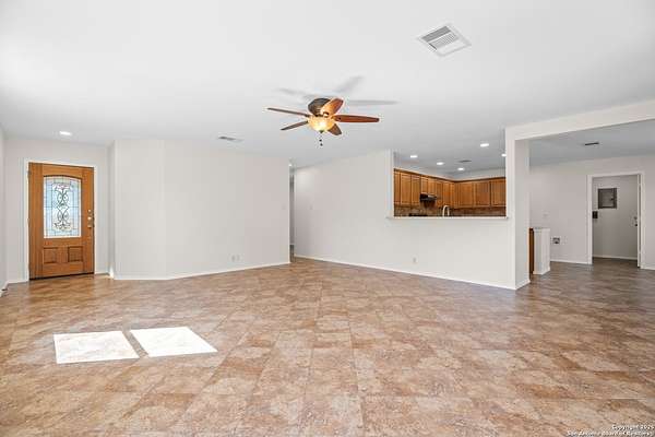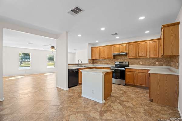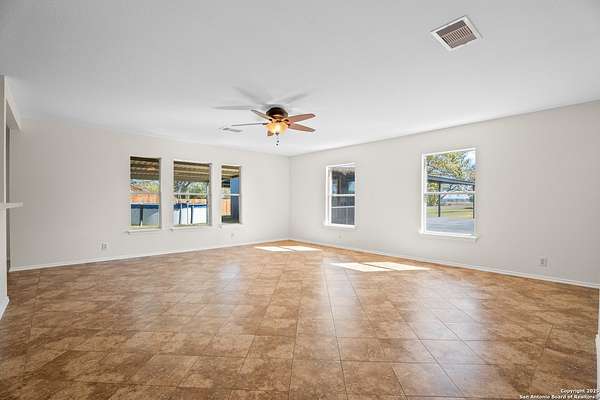 Very Motivated Sellers! New Pictures,looks much better with new rehabs! Welcome to country living with city convenience! You are going to love this property! This spacious 3BR/2BA home on 1.763 acres (fully fenced with chain-link & privacy fencing) offers 1,974 SF per tax records, featuring two large living areas- one which is perfect for a media room, home office, game room, or potential 4th bedroom. Freshly painted interior with easy-care Travertine tile flooring, and beautiful wood look Luxury Vinyl in the Bedrooms and front Living Area,no carpet! The large kitchen boasts ample counter space, an island, and a stylish tile backsplash. Enjoy outdoor living on the oversized 20x18 covered back patio. The property includes and you will love this also, a massive 25x50 garage/workshop with 3 overhead doors, a 25x50 front carport, and a 12x50 rear covered area. Approximately 1250 Sq.Ft. inside! There is a partial sprinkler system around the house and two sides of the garage! Plus Radiant barrier and blown in insulation! Located in Cibolo city limits, just 2 miles from I-10 and minutes to FM 78. Don't miss this rare find with space, flexibility, and functionality!