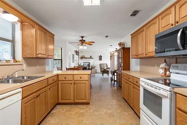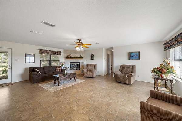 Discover your own slice of paradise with this stunning 48-acre property, featuring a charming 3-bedroom, 2-bathroom brick home. As you enter, you're greeted by an inviting open-concept living space that centers around a beautiful wood-burning fireplace, creating a warm and welcoming atmosphere perfect for gatherings. The large galley kitchen is a chef's dream, providing ample space for culinary creations and entertaining.