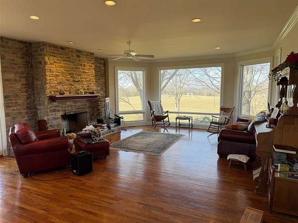 Discover the perfect blend of comfort and country living with this exceptional property in Warren County, KY. This 3-bedroom, 2.5-bath home features an open floor plan and large windows throughout, allowing you to take in beautiful panoramic views from nearly every room. Cozy up by one of the two fireplaces or enjoy the added peace of mind with a partial basement that doubles as a storm shelter. The property is well-equipped for both work and recreation, offering a 2-car detached garage, two barns--including a former tobacco barn and an 8-stall horse barn with loft--plus two additional sheds. A three-bay shop with office space provides ample room for hobbies, storage, or business use. This unique property offers space, functionality, and scenic surroundings--perfect for those seeking a true country retreat.