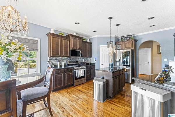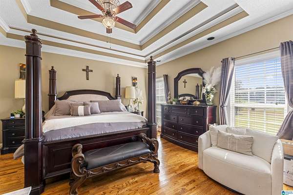 Welcome to this spacious 3,350 SqFt home, offering 5 bedrooms with 3 1/2 baths in a beautifully designed layout. The primary suite is conveniently located on the main level, featuring elegant tray ceilings for a touch of luxury. 4 bedrooms on the upper level with a Jack and Jill bathroom and full bathroom. Enjoy hosting in a formal dining room and cooking in the gourmet kitchen, complete with high-end upgrades. Step outside to the back deck, where you can relax while overlooking the sparkling pool with a waterfall feature and taking in the breathtaking views of the mountains. The property includes a 4-car garage - two attached and two detached. The detached garage features a covered patio, perfect for relaxing poolside with enjoying the serene surroundings. Above the detached garage, a spacious bonus room offers endless possibilities as a guest suite, office, or recreation space. This is a rare opportunity to own a home that truly has it all. Schedule today!