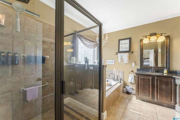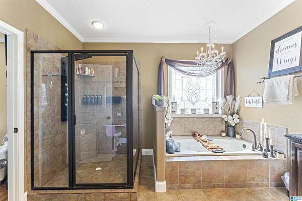 - Jetted Tub, Separate Shower, Separate Vanities, Shared Bath, Textured Walls, Walk-In Closets