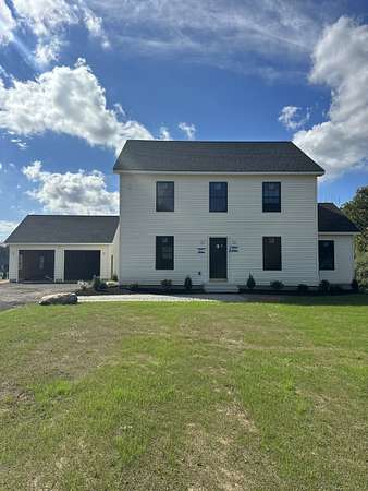 Exciting new listing in a charming new subdivision! This stunning colonial home features 4 bedrooms and 2.5 baths, perfect for family living. The open layout creates a welcoming atmosphere, highlighted by a beautiful kitchen with quartz countertops and a large island ideal for entertaining. The master suite is conveniently located on the main floor, offering comfort and privacy, while upstairs boasts three spacious bedrooms and a full bath with laundry. Outside, enjoy the privacy of an end lot on a generous 1.5-acre open lot, complete with a detached two-bay garage. Exceptional landscaping with fencing and shrubs. This new construction home offers breathtaking sunset views and modern amenities in a desirable location-don't miss out on this exceptional opportunity!