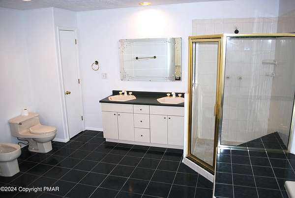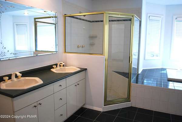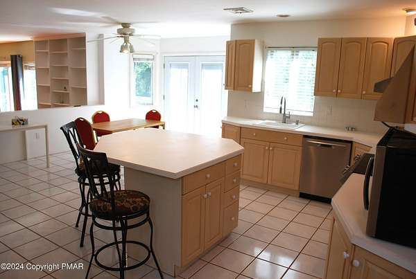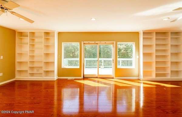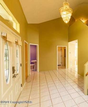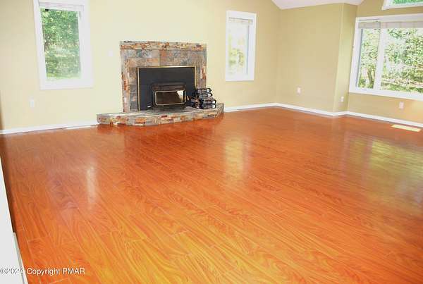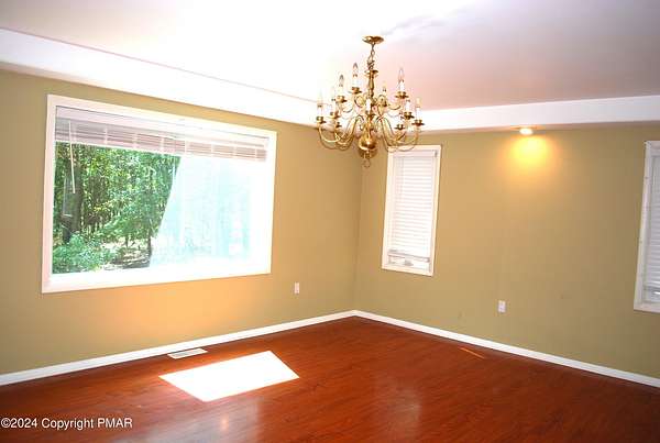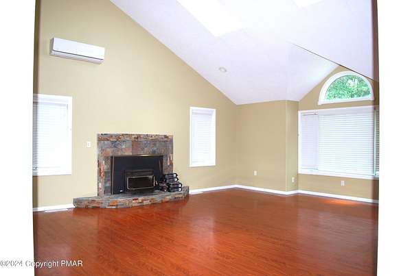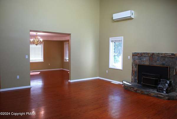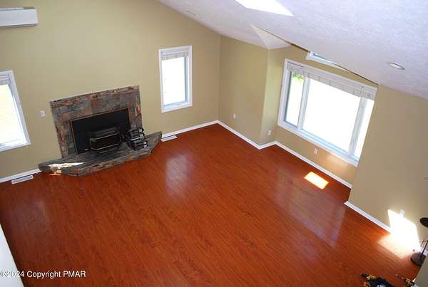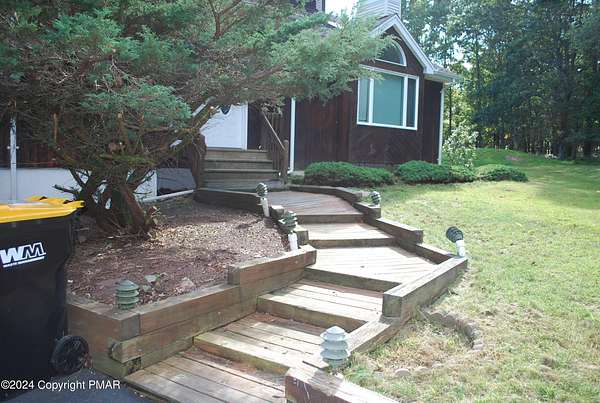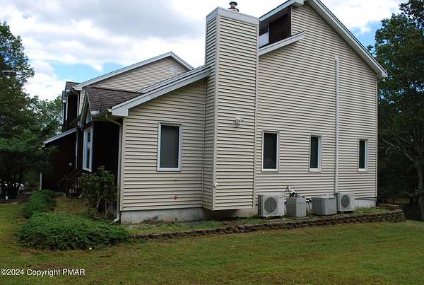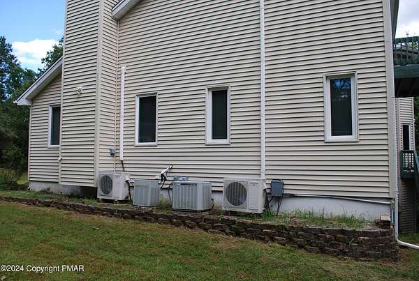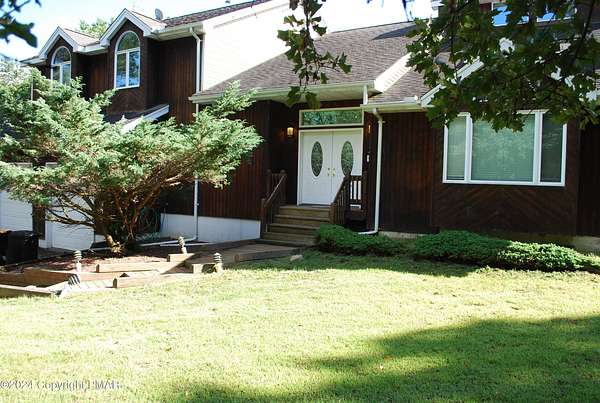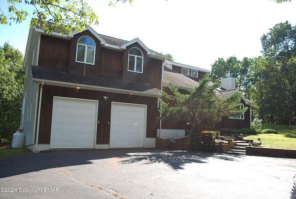Located in friendly Valley View Estates, this cedar sided Contemporary Colonial on 1.5 acres features an open concept floor plan, vaulted ceilings, 4 spacious bedrooms with plenty of closet space, 4 bathrooms, first floor family room with built-in bookcases, a formal living room with a nice stone pellet stove fireplace to keep you warm. Also features a large eat in kitchen with pantry and a formal dining room. In the basement with a separate entrance you will find brightly lit spacious area that can be used for a den/office space, exercise room, workshop, or entertainment area. A separate pellet stove to heat the entire downstairs. Lots of storage area. This home was built with 6x6 construction and is very well insulated. Multiple zones heating /cooling options from dual zone central air. Four extremely efficient individual mini-split units provide heating and cooling. Radiant floor heating on the first and second floors. An oil boiler can also be used for those extremely cold days. A tankless water heater can be used for when the boiler is not needed. U-shaped paved driveway with two entrances. 2 oversized garage parking areas with high ceilings. Plenty of height if you would like to put a car lift. Expansive upper and lower deck with master bedroom Juliet deck. Plenty of space if you need to stay indoors with lots of room to move around for the entire family. A short drive to all the outdoor activities. Hiking, camping, fishing, boating, state game land, snowmobile trails. There are many ski resorts, entertainment and restaurants less than 15 - 20 minutes away. Shopping is not too far away. This is a must see! Schedule your showing today. INCLUDES a half-acre lot in Holiday Pocono