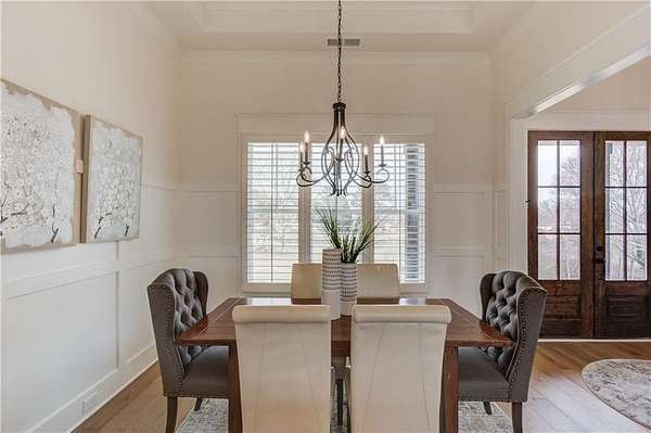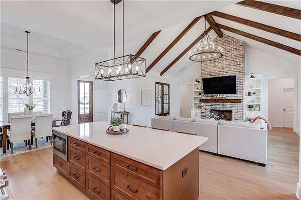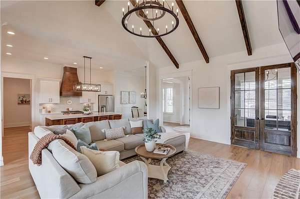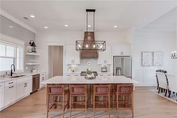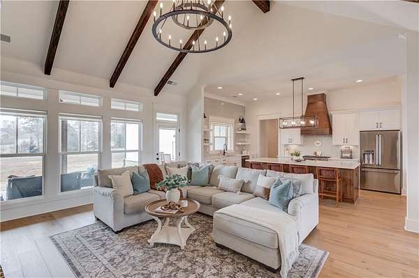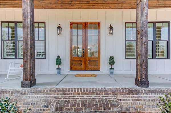 NEARLY NEW RANCH RETREAT ON 3.3 ACRES WITH GATED ENTRY AND SUNSET VIEWS! Experience refined countryside living in this two year custom home, perfectly situated in desirable Buford. This gorgeous modern farmhouse style blends timeless charm with elevated finishes, craftsmanship, and functionality. Inside, a grand vaulted family room with wood beams, and a striking fireplace creates an inviting and dramatic focal point. The custom chef's kitchen features designer high-end finishes, a sprawling island, eat-in dining, and a spacious walk-in pantry. The open-concept floor plan provides the perfect flow for entertaining, every day living, and making unforgettable memories with family and friends. An oversized laundry room offers abundant cabinetry and generous folding space for everyday convenience. This home offers 4 bedrooms and 4.5 baths, providing comfort and flexibility for family and guests. The partially finished terrace level is ideal for entertaining with a sizeable bar, recreation area, seating area, a private office, and a full bath with plenty of unfinished space allowing for further customization. Upstairs, you will find an unfinished grand attic space with an abundance of natural light, already plumbed for a future bathroom and walk-in closet, offering excellent expansion potential for family or guests. Enjoy breathtaking sunset views from the covered porch overlooking the expansive, pool-ready backyard. An extra-deep two-car garage provides ample storage and workspace. With no HOA, your imagination is the limit. Ideally located, this private estate offers peaceful country living just minutes away from I-85, premier shopping, dining, and everyday conveniences.