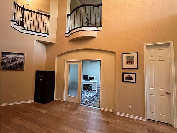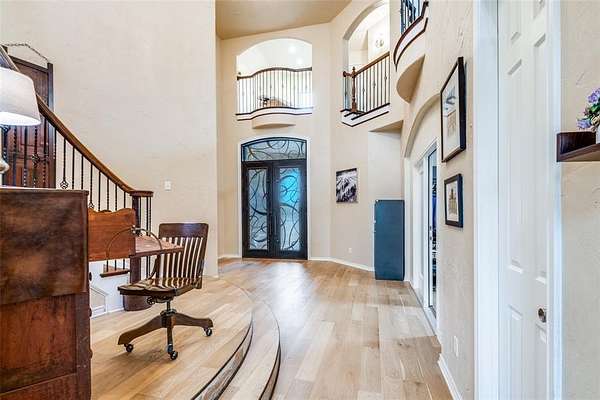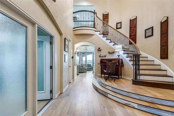 Enjoy almost 4 acres and bring your horses! Country living, yet close to the city! The gated entrance with automatic gate has a long driveway that leads to the beautiful custom home! This spacious home featuring stone and brick offers 4 - 5 bedrooms, a 3 car garage, and tons of storage! The front has a beautiful, grand entrance with gorgeous steel doors! The foyer has a stunning curved staircase, soaring ceilings and a Juliet balcony. The living area boasts a beautiful fireplace, views of the back yard and pasture, and is open to the spacious kitchen and breakfast area. The kitchen features custom cabinets, a moveable island, breakfast bar, pantry, and is plumbed for gas. The primary bedroom has a separate sitting area and a large bath with spacious shower and separate vanities. The first floor also features another bedroom with full bath. The utility room currently has a second refrigerator, stackable washer and dryer, and an upright freezer. Upstairs you will find two more bedrooms (one was formerly a media room and can be converted back), a second living area, and Juliet balcony area that could be a lovely sitting area. There is attic area upstairs that the previous owners said has an add'l 300 sf for another bed and bath. This is an amazing home that has so much to offer!