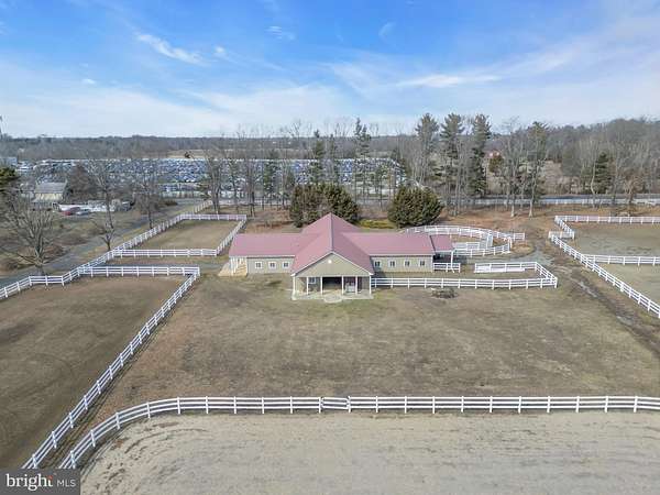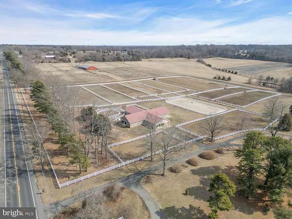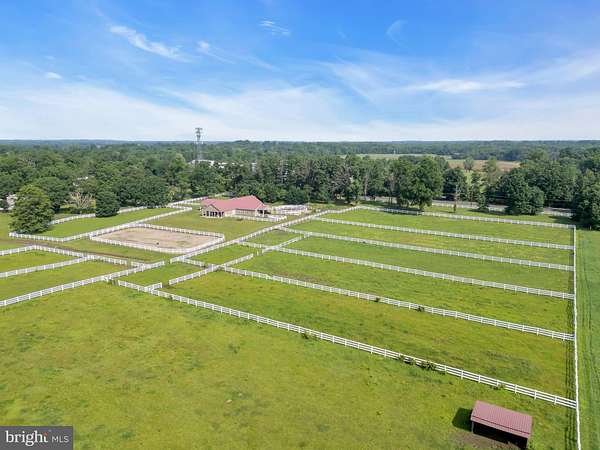 An incredible EQUESTRIAN PROPERTY with 20 STALL BARN & 2 RESIDENCES...a dream come true! Welcome to this truly spectacular horse farm situated on 15.05 ACRES of stunning rural scenery with exceptional views in Burlington County! This stately HORSE FARM PROPERTY is truly a showplace! This turn key FARM ASSESSED PROPERTY is an amazing opportunity for an equestrian operation or agricultural endeavor! Luxurious equestrian amenities! The grand custom center aisle HORSE BARN in cross pattern design hosts 20 STALLS featuring an indoor wash stall w/ hot/cold water, tack room, feed room, grooming area, hay/equipment storage area, utility area & outdoor wash stall w/ BONUS custom climate controlled office/bar. Enjoy your OUTDOOR ARENA, train in your ROUND PEN or trail ride along the perimeter of the property...this farm can accommodate any equestrian discipline! Lush fenced paddocks & grazing pastures encompass the majority of the property creating an incredible haven for any horse or farm friends. Your new lifestyle awaits as you enter the custom 5 bedroom, 4 full bath CUSTOM BRICK HOME with farm views from every direction. Step into a home that is refreshingly bright & airy, a unique architecture style of an upgraded traditional split level style that evokes trendy yet modern country living with fine custom finishes. A designer's dream...magazine worthy! The focal point of the home is the delightful open concept space spanning across walnut floors which combines the panoramic living room w/ tempered glass Andersen floor-to-ceiling windows & wood burning stove, central dining area & grand gourmet kitchen w/ luxury appliances (Italian 8-burner stove, wood hearth & twin built-in refrigerators!) & custom appointments (quartzite counters, walnut countertop island, dual farmhouse sinks!) into a space of pure enjoyment for relaxing & entertaining! BONUS custom wine room/sitting room w/ mesquite wood floor & wet bar & second kitchen/butler's pantry complete the main level! Venture upstairs to the next level which features a bedroom suite w/ vanity area & full bath; 2 additional bedrooms & hallway full bath w/ clawfoot tub & shower. Located on the top level of the home, the oversized primary bedroom suite features a sitting area, window seats, walk-in closet, additional closet & a gorgeous renovated full bath with custom canoe maker soaking tub, dual vanities & shower stall. Not to be missed, think guest suite or recreation area...the lower level includes a spacious family room, an additional bedroom, full bath w/ shower, laundry/mud room with exterior access & access to a partial basement for utilities & storage. The peaceful acreage creates a secluded setting to relax outdoors amongst the varying entertaining spaces which includes a patio & terrace overlooking the farm. Not to be missed is the SECOND HOME...a lovely 2 bedroom 2 bath farmhouse w/ living room, kitchen & laundry area. For those seeking to expand on their agricultural endeavors, this boutique farm could easily blend in herbary, apiary or winery activities or a farm activity of your desire. An abundance of open space yet still close to major conveniences such as commuter access to the NJ Turnpike. Experience the pure peace and tranquility of this delightful horse farm!