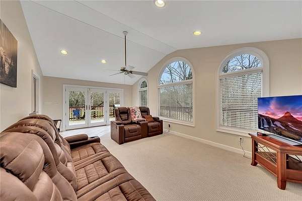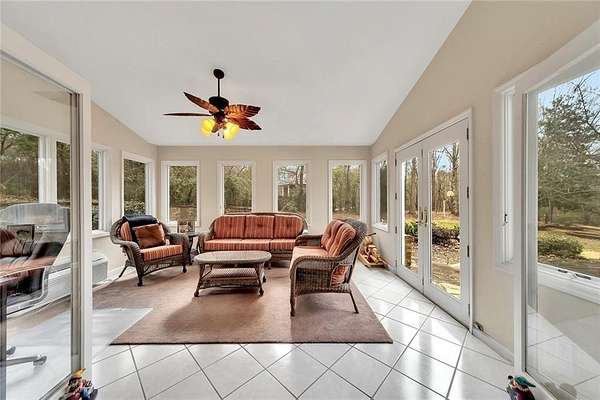 Set on a private, level 1.92-acre homesite in desirable Cherokee County, this thoughtfully updated property blends space, function, and tranquility with exceptional outdoor living. Recent improvements include a new roof (2025) and a rebuilt deck (Spring 2025), complementing a layout designed for both everyday comfort and entertaining. The primary suite is conveniently located on the main level, opening to a stone patio pre-wired for a hot tub, while multiple living areas offer flexibility and abundant natural light throughout. A large workshop provides room for a boat, tools, and hobbies, with an additional finished living space above featuring a tongue-and-groove ceiling and full bath-ideal for guests, a studio, or private retreat. An extra outbuilding offers dedicated storage for lawn equipment, and a level backyard delivers rare privacy and usable land, creating a peaceful escape with easy access to Roswell, East Cobb, Woodstock, and beyond.