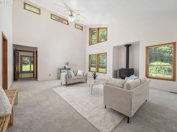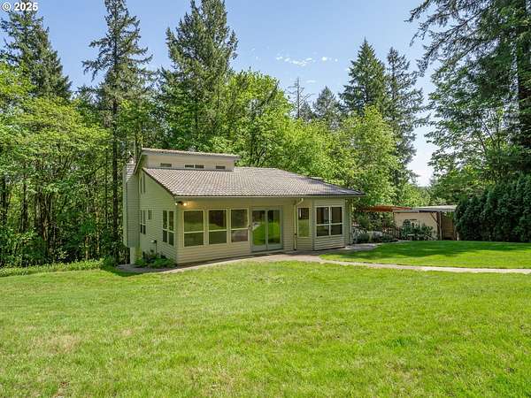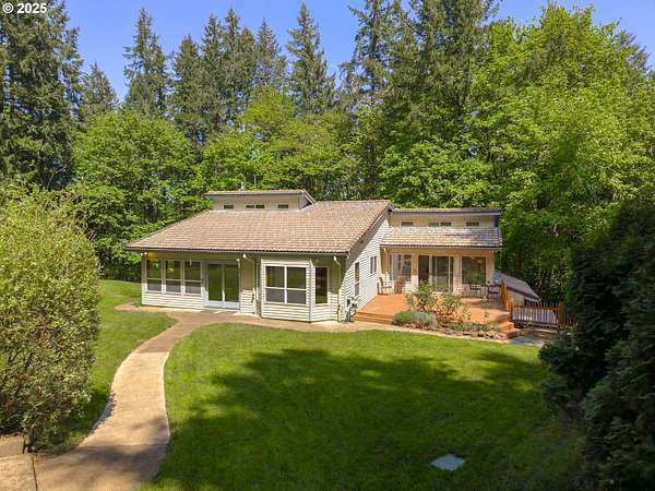Tucked away on 5.65 private acres, this secluded retreat offers the perfect blend of tranquility and convenience. Ideally situated in Oregon's renowned wine county with 5 wineries within 5 miles from the residence. Surrounded by native flora and a mix of lawn and forest, the property invites regular visits from wildlife-best enjoyed from the peaceful deck. The contemporary home features a bright, open interior with multiple living spaces including a living room, family room, and sunroom. With four bedrooms total-one on the main level and three downstairs-there's plenty of space for guests, hobbies, or home offices. Despite its quiet, wooded setting, the location offers easy access to Hillsboro, Beaverton, Newberg, and the hi-tech corridor. A large parking pad provides ample space for vehicles and includes an RV hookup. HOA dues are just $125 per year and cover road maintenance. High-speed internet is available, making remote work and streaming a breeze.