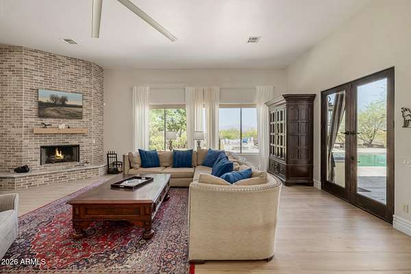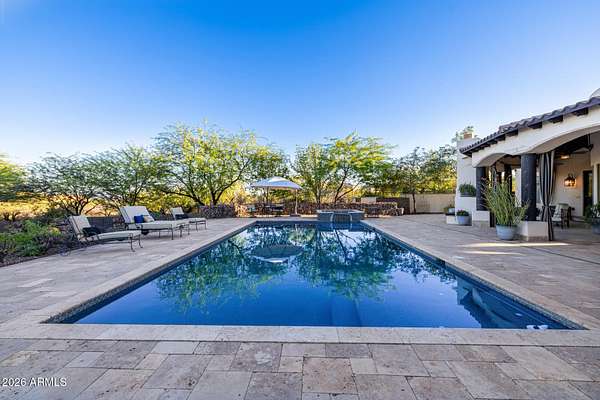 Ready to move and impossible to replicate, this is the Scottsdale lifestyle at its finest. Set on 10 pristine acres in the heart of coveted horse country, this beautifully updated estate offers a rare blend of luxury, privacy, and limitless potential. Step outside and experience what truly sets this property apart--an extraordinary backyard designed for year-round enjoyment. Take in unobstructed views of Four Peaks from your heated pool and spa, unwind by the two-sided fireplace, or host unforgettable evenings with a built-in grill and wall-mounted propane heaters. Every detail, from the custom fencing to the curated landscaping, creates a setting that feels like your own private resort. Whether you're envisioning a premier equestrian operation or simply craving room to breathe, the acreage delivers on every front. A massive shop adds an exceptional layer of versatility -- purpose-built for serious storage, equipment, or whatever your lifestyle calls for. Beneath it all, a high-output private well supported by two 10,000-gallon storage tanks ensures the kind of reliable water infrastructure that ranches of this caliber demand. Rarely does a property combine this level of turnkey luxury with the flexibility to create your own equestrian legacy. Whether you are seeking a quiet escape or a world-class horse property, this exceptional estate is truly in a class of its own.