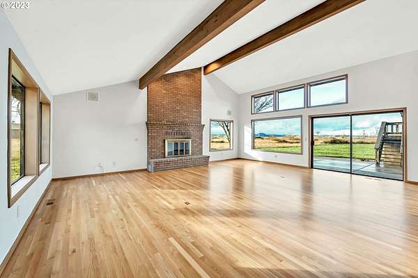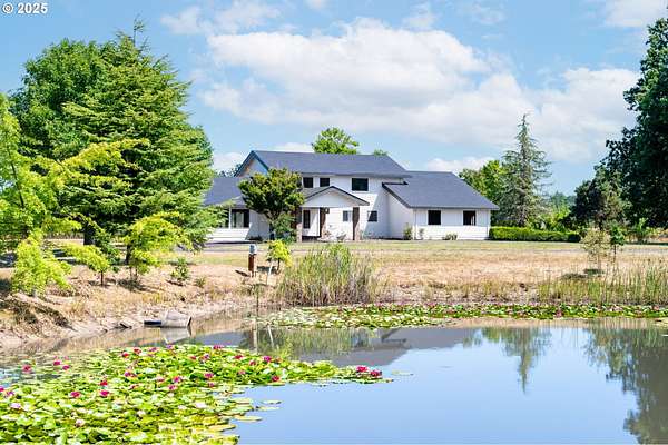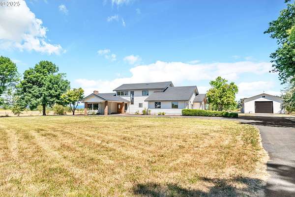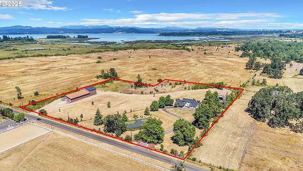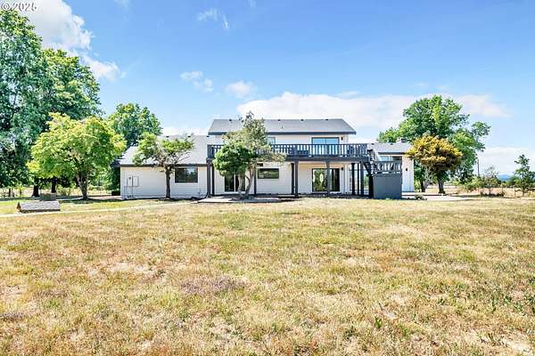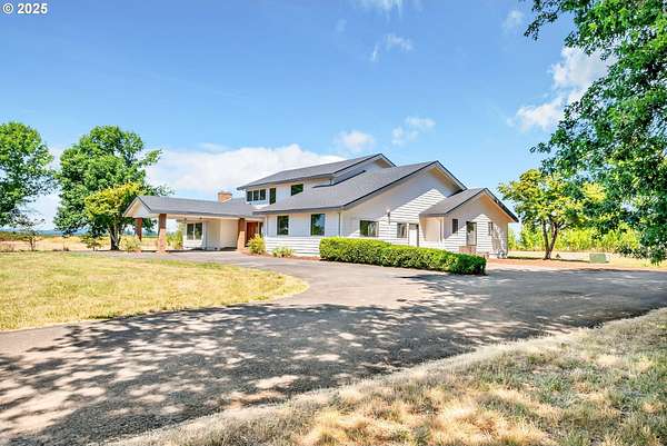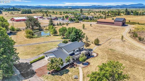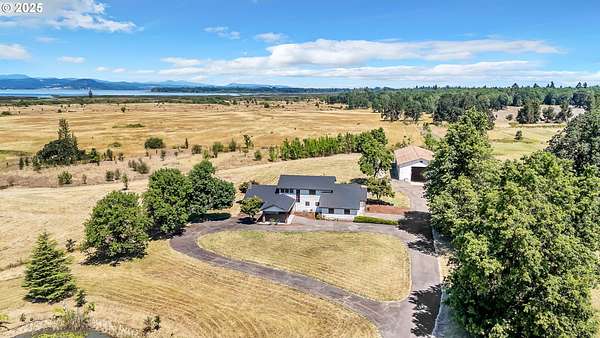 Tranquil open setting surrounds this executive home with 13,000 sq. ft. of enclosed shops (2) fully finished interior with concrete floors! A beautiful open country location at the end of very convenient Royal Ave. Surrounded on 2 sides by 100's of acres of Fern Ridge Wildlife Area. Newly remodeled. New roof. New exterior paint. Grand living room of high vaulted ceiling with newly refinished hardwood floors and large wood burning fireplace. Large kitchen features new granite counters, new stainless steel appliances, new 8 burner gas convection double stove and commercial grade fanhood. Unique indoor/outdoor nook bar at covered patio. Large, luxurious master suite with full hardwood floors, oversize bathroom with custom oversize tub, shower and sauna. 2 upper bedrooms, each with full bathroom access. New carpeting. Large vaulted separate upstairs informal area with sweeping views of the open Wildlife Area and Coast Range from the large upper deck.