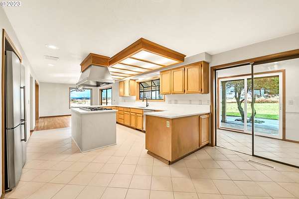 - Convection Oven, Cook Island, Dishwasher, Double Oven, Free Standing Gas Range, Free Standing Refrigerator, Pantry, Plumbed For Ice Maker, Quartz, Range Hood, Solid Surface Countertop, Stainless Steel Appliance, Wine Cooler