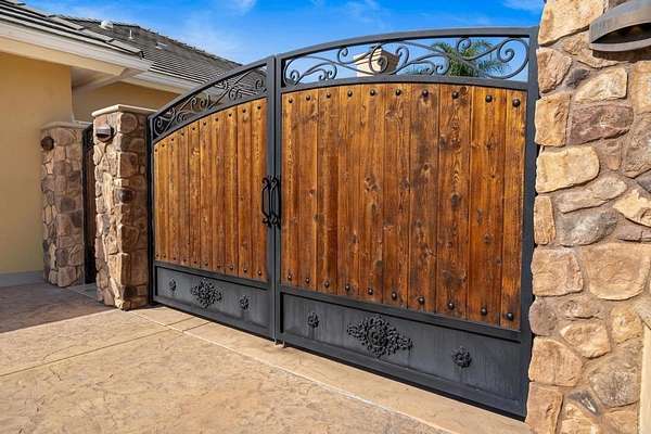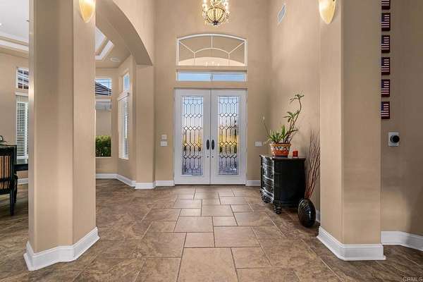 Welcome to 2772 Firebrand Drive also known as "Casa Ensueno." This DREAM HOME is a stunning single level estate located in the exclusive guard gated community of Rancho Palo Verde Estates. Wonderful split floorplan with a no step entry! Set on over 2 acres, Casa Ensueno is an entertainer's delight, resort style palm oasis where expansive glass pocket doors frame unobstructed views of your private backyard. Infinity edge pool with cascading waterfalls, walk-in beach entry and lush tropical landscaping with a fully equipped outdoor kitchen are just a few of the luxury surroundings. Tranquil and private, the setting feels like your own exclusive retreat. A Chef's kitchen features all stainless steel appliances with tons of extensive cabinetry. Don't miss the dual dishwashers, pot filler, warming drawer and appliance garage. The luxurious primary suite offers French doors to the patio, a dual-sided fireplace, private sitting area, dual walk-in closets, and separate dual bathrooms with a unique master bath water fill. Each guest bedroom includes an en-suite bathroom. The office boasts custom built-in cabinetry, hardwood floors, and desk with sweeping eastern views. Fully owned solar for energy efficiency. Three car garage has a pull-thru option. Boat/RV Storage in the side yard behind beautiful custom iron and wood gates. Meticulously maintained and extensively remodeled, Casa Ensueno showcases tumbled stone tile floors, fresh exterior paint and so much more! Every detail reflects quality and sophistication, making this estate a true Rancho Palo Verde showpiece.