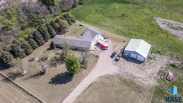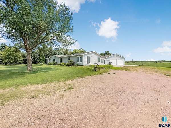 Located on 4 acres of countryside, this 3-bedroom, 2-bath home offers the perfect blend of space and location. Minutes south of Sioux Falls on a hard surface road. All 3 bedrooms and bathrooms are on the main level with a eat-in kitchen, dining room, two living rooms, laundry, and mud room. The property features newer Anderson windows, siding, and roof. An oversized attached 2-stall garage provides ample space for vehicles and storage, while the 40x40 shop offers endless possibilities for hobbies, projects, or business ventures. Whether you're looking for peaceful rural living or a versatile property with room to grow, this home is a rare find.
