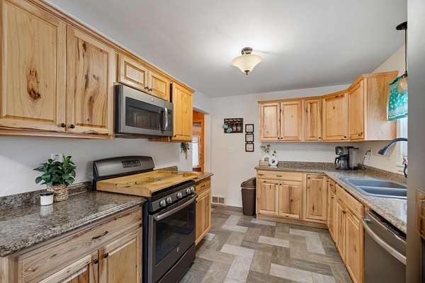 Welcome home to this updated ranch-style home set on 2 acres of open, usable land in Montcalm County. This 3 bedroom, 2 bath home offers a comfortable layout with hardwood floors and great natural light throughout the main living spaces. The refreshed kitchen features solid wood cabinetry, a pantry, and included appliances, All bedrooms are located on the main level, including a spacious primary bedroom with convenient access to the full bath. The finished basement expands your living options with a large recreation area, a bar, a gas fireplace, a second full bathroom, and additional storage. Outside, enjoy a welcoming front porch, deck, paved driveway, attached two-stall garage, fenced in backyard and a storage shed. Major updates include siding, roof, windows, kitchen, bathrooms, flooring, mechanicals, well, septic, and driveway. Located in the Greenville School District with easy access to trails and town. This property offers spack, privacy and move-in-ready updates!