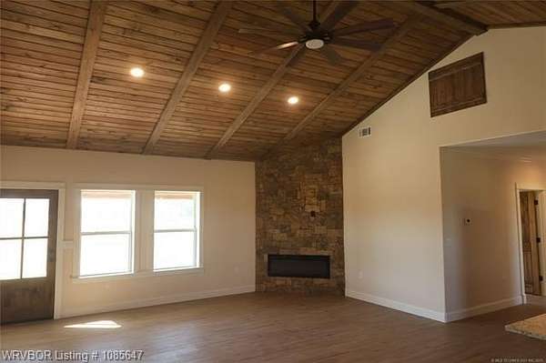 Welcome to this stunning brand-new construction located on 2 acres in Cameron, Oklahoma, with the opportunity to purchase an additional 18 acres for those wanting more space and privacy. This beautiful home features 4 bedrooms and 2.5 bathrooms, designed with an open-concept floor plan that feels both spacious and inviting. Inside, you'll find granite countertops throughout, adding elegance and durability, along with vaulted wood ceilings that give the home a warm, rustic charm. Enjoy peaceful country living from the covered front and back porches, perfect for morning coffee or evening gatherings.