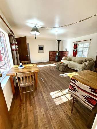Have you always wanted that special little place beneath star filled skies, where the air feels different, and the forest surrounds you? Tucked into the beloved Seven Springs community, these two vintage cabins offer a fresh, light loving restoration, retro charm paired with thoughtful updates, creating a look that feels both classic & current. Set beneath towering Ponderosa pines, a gentle rivulet flows through the front yard, the setting invites connection, outdoor living, easy gatherings on the central deck.Moments from Fenton Lake State Park, known for fishing, kayaking, hiking trails, wildlife all around, endless ways to enjoy the mountains. A rare opportunity to own a character rich mountain escape, ideal for weekend retreats, creative space, or shared living. Bring your hammock!