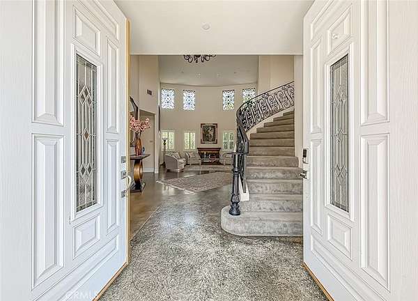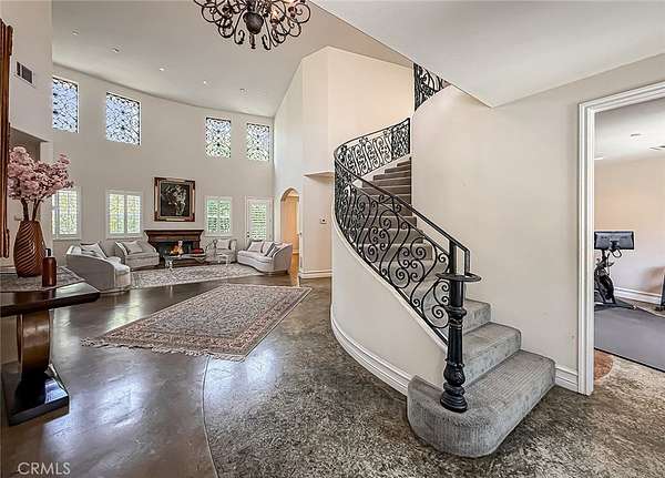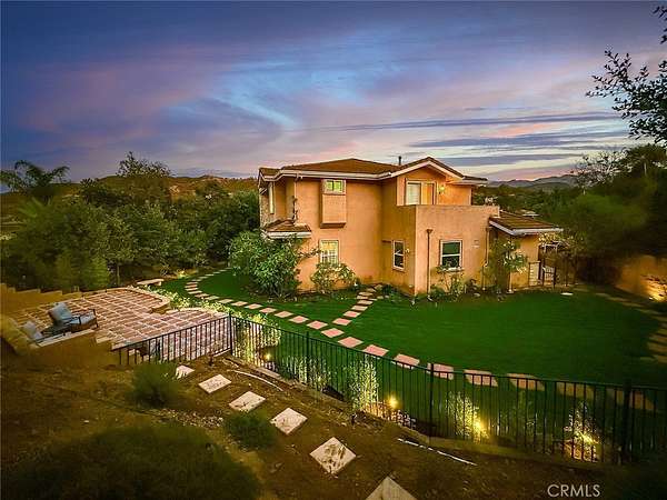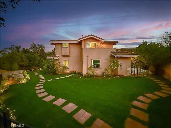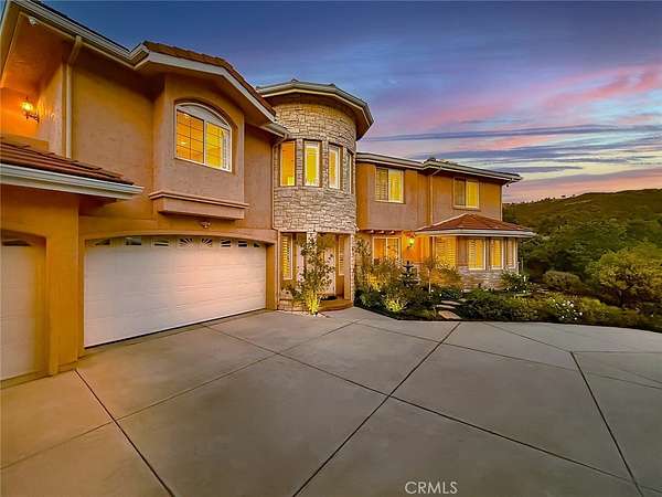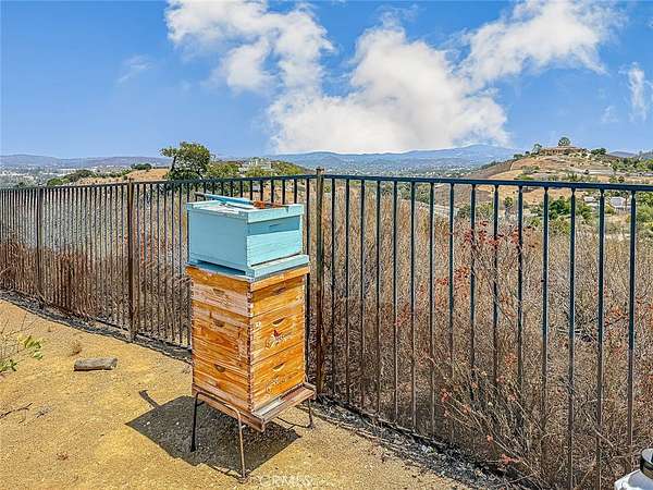 Welcome to the exclusive gated enclave of Lynn Oaks Estates. This stunning residence is perched atop a long private driveway and offers breathtaking surroundings on approximately 1.5 acres. This one-of-a-kind property includes a working beehive for fresh honey, a charming chicken coop, and potential building opportunity, with the possibility of a separate access driveway via a neighboring easement with breathtaking 360-degree view--enjoy sunrise to sunset views of the surrounding mountains, rolling hills, and city lights. Behind elegant double entry doors adorned with leaded glass insets, you're greeted by a showstopping circular wrought-iron staircase, setting the tone for the sophistication throughout. The formal living room boasts dramatic cathedral ceilings, a custom fireplace, and ornate iron-accented windows that flood the space with natural light. An arched passageway leads to the formal dining room, perfect for hosting elegant dinners. Adjacent, the butler's pantry flows seamlessly into the heart of the home--an expansive gourmet kitchen equipped with stainless steel appliances, a large walk-in pantry, and a generous center island, all open to a spacious dining area and inviting family room complete with fireplace, wet bar, and plantation shutters. Downstairs also includes a versatile office/gym, a guest bedroom, and two baths, offering comfort and functionality for family and guests. Upstairs, the massive primary suite serves as a private sanctuary featuring a balcony with a view of the backyard, an ensuite bath with dual vanities, a soaking tub overlooking the backyard, a separate shower, and a private water closet. Additional bedrooms include one with a private ensuite and two sharing a Jack-and-Jill bath, all designed with comfort and style in mind.