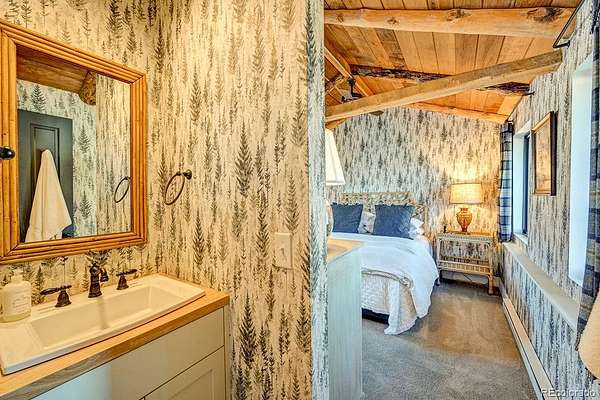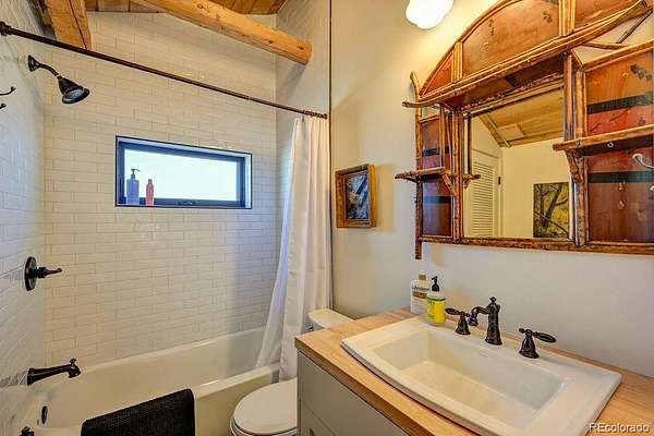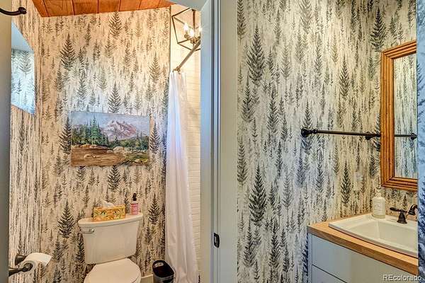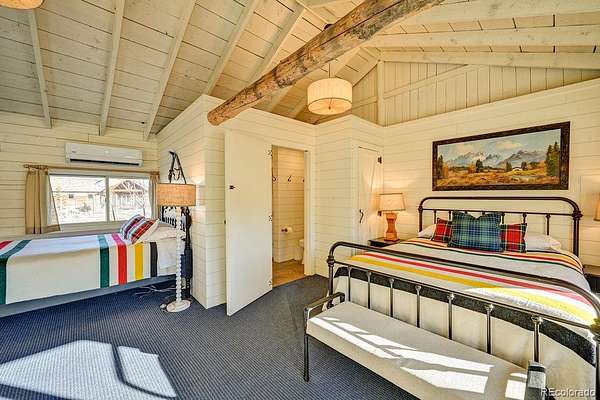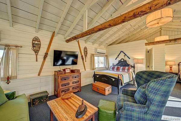The Main Home is a stunning stone and stucco showpiece set right on a flowing creek beneath a canopy of mature aspens. Massive Sierra Pacific windows pull the outdoors in. River rock masonry, a soaring great room, and craftsman details give it a timeless feel. Step out onto the flagstone patio and the creek is right there. Inside you will find 1 bedroom, 2 bathrooms, refinished hardwood floors, a stone fireplace, custom tiled shower, and high end finishes throughout.