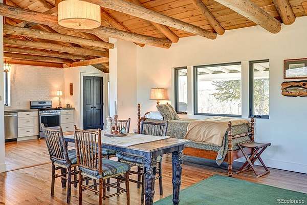 The Guest Home is a fully equipped studio style cottage with its own kitchen, bath, river rock fireplace, and covered wraparound porch positioned to soak in the Collegiate Peaks. Perfect for guests, extended family, a home office, or short term rental income.