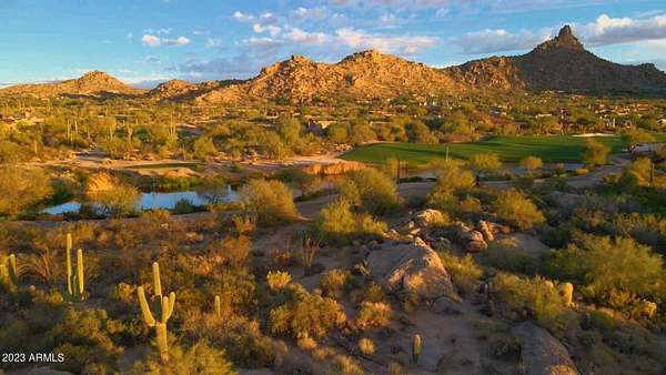 The last available 5+ acre lot bordering the Estancia Club's 4th hole and lake of the iconic course with NO HOA! Secluded historic parcel with an expanded homesite in the boulders with spectacular views of Pinnacle Peak. And even a seasonal waterfall, grotto and capped well. For the person who wants a piece of property that nobody else will ever have! A private sanctuary ready for a landmark residence. We can put you in touch with renowned architects that have toured this rare parcel and have a vision. This was the ''Diamond'' in KT Palmer's ranch, the co-founder of Carefree, Close to the famous Scottsdale nightlife, shopping and activities. Golf memberships in Arizona's top-rated Estancia Club are available. Be sure to watch the video tour. Check supplement. for more info.