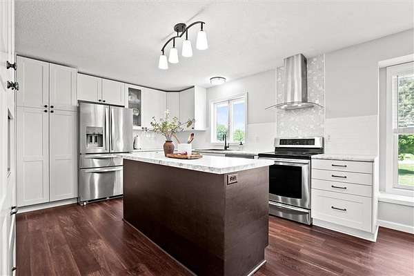 BEAUTIFUL REMODELED RANCH with WALKOUT BASEMENT! This home will IMMMPRESS while sitting on almost 20 partially wooded acres with a flowing stream with places to camp and play and farm!!! This home has been updated with high quality workmanship from head to toe. Clean Clean Clean. NEW roof 2025! All newer flooring, new inside paint, new countertops and new soft close cabinets. Your GORGEOUS kitchen has stainless steel appliances and a large oversized island for entertaining or food preparation. Laundry and all baths are updated with excellent workmanship as well. This 3 bedroom/3 bath home has 2 main floor bedrooms, with the third bedroom and 2nd family room in the walkout basement. NEW hot water in 2023. New smoke detectors 2023. Garage is oversized with a new walk in door and new windows. The SHOP BUILDING has many possibilities measuring 65 x 30. The first 32.5 x 30 is enclosed with partially insulated 5" thick concrete flooring, 2 electric heaters, R30 roof insulation and R19 in the walls. Doors are 10 X 9.5. 100 amps of 220v power. The other 32.5 x 30 has gravel floors, 12 foot tall openings with 50 amp hook up for a camper. Water nearby! Home is quality built with 2 x 6 construction. Be sure to see both videos as well!