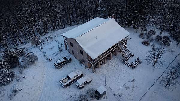 The home itself is a a testament to luxury off-grid living that is well appointed, convenient and comfortable. Designed as a multi-family residence or mother-in-law suite, the house features 2 fully functioning apartments w/ separate entrances. The upper level boasts 2 bedrooms, 2 bathrooms, & an additional office or den, an open great room with kitchen, dining, & living spaces. Hardwood, tile, & laminate flooring run throughout, while large windows frame the private mountain views. Recent updates include new stainless-steel appliances, updated kitchen plumbing, modern lighting fixtures, and a new roof. A gravity fed spring & propane hot water heater ensure constant modern convenience while a wood stove adds cozy ambiance for chilly winter evenings.