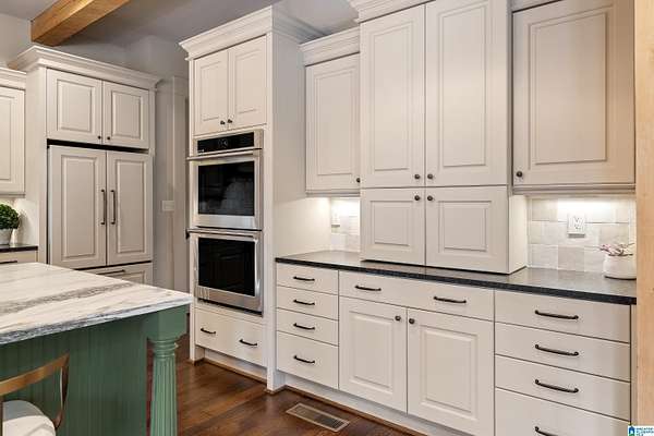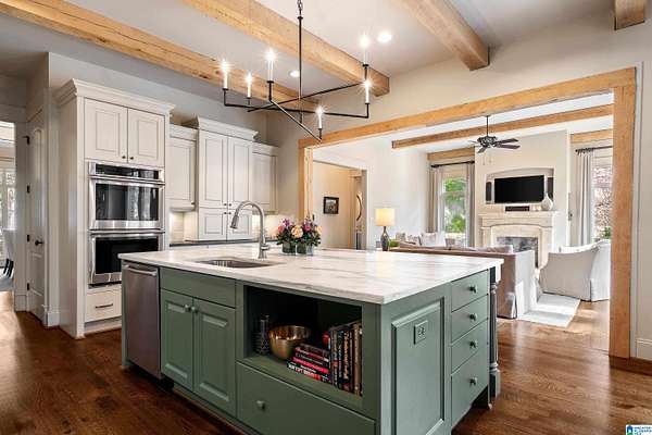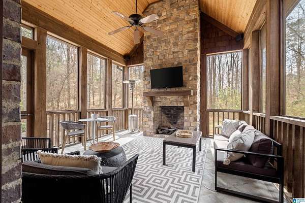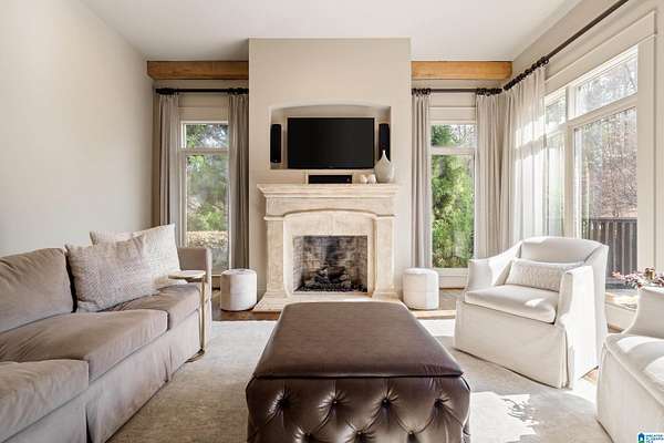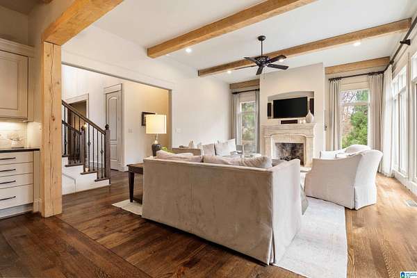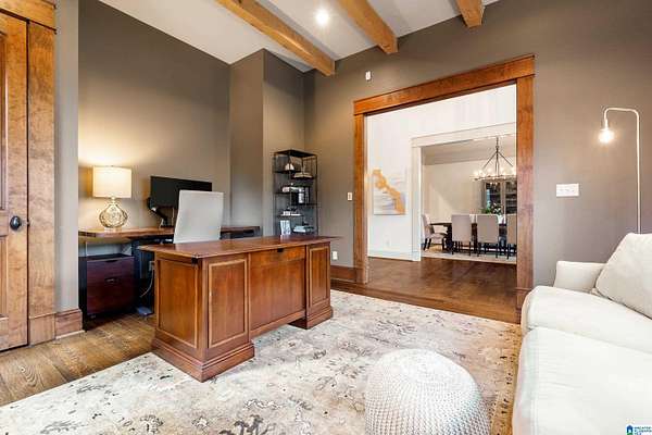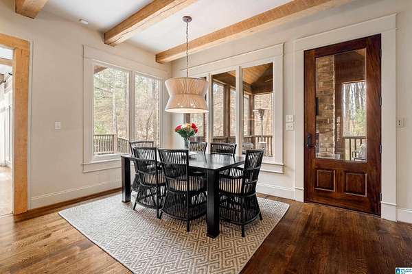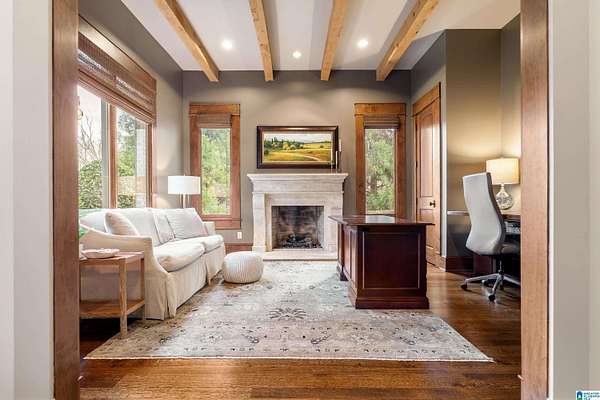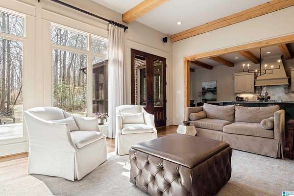 This custom-built estate sits on 1.8 private acres, offering the perfect blend of convenience and serene, wooded surroundings. A slate porch and French doors welcome you into beautifully designed living spaces with rich hardwoods, cedar beam accents, custom trim, and abundant natural light. The main level features a spacious dining room, front office with fireplace, and an inviting living room with beamed ceiling and wall of windows overlooking the expansive yard and large deck. The chef’s kitchen boasts a large center island with new marble countertop, Viking gas cooktop & GE Monogram double ovens, walk-in pantry, and breakfast nook opening to a screened porch with stone fireplace. The luxurious primary suite includes a sitting area, spa-like marble bath, and dual walk-in closets. Upstairs offers two ensuite bedrooms, plus 2 other bedrooms and bath, bonus room and huge walk-in attic! Located in unincorporated Jefferson County yet contiguous to Vestavia for possible annexation.