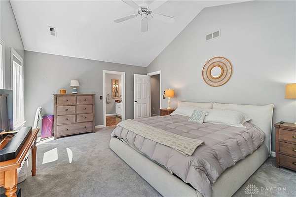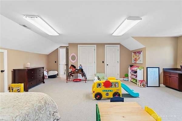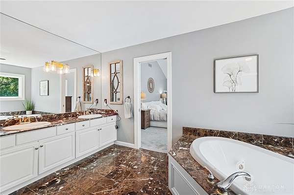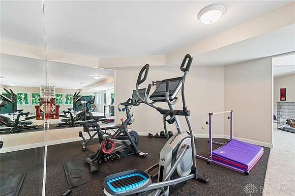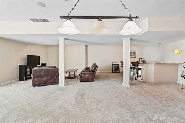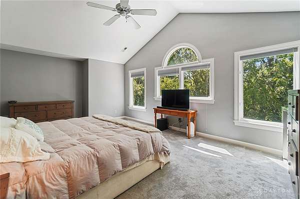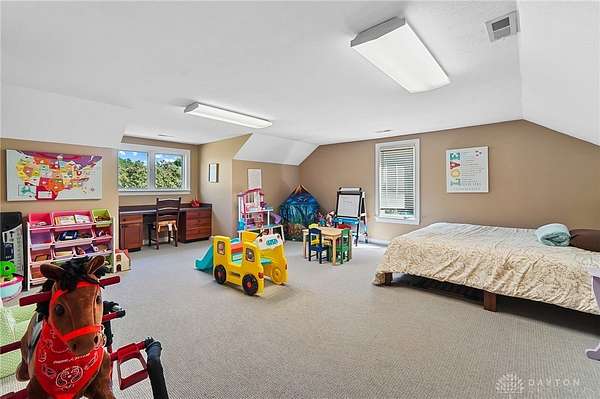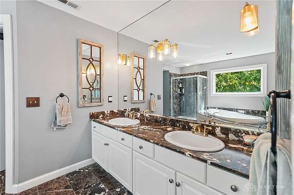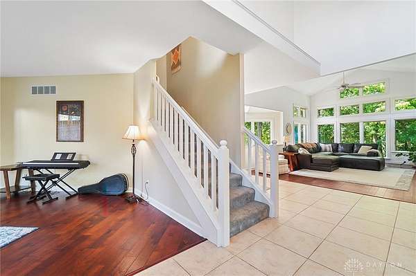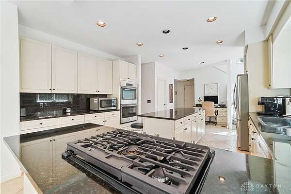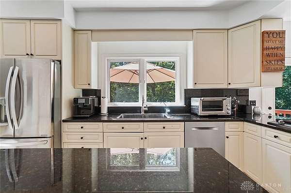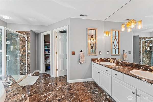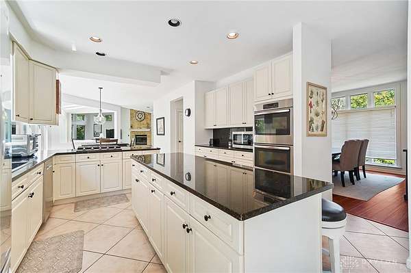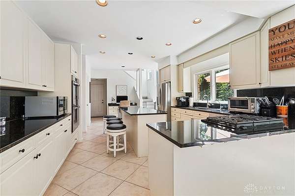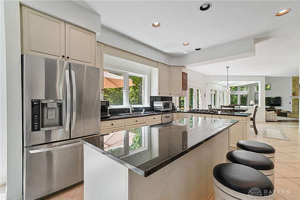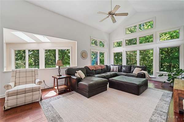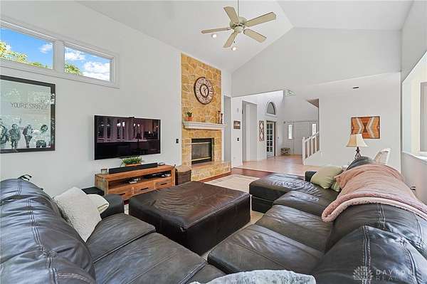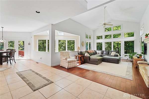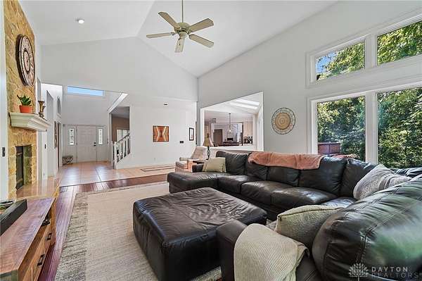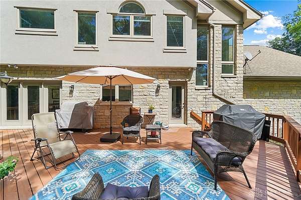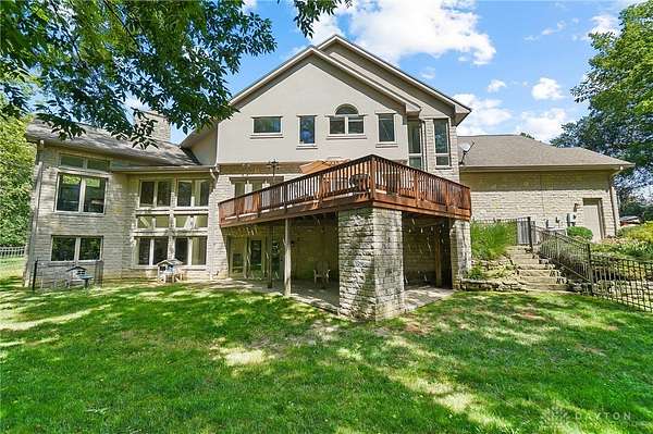 Impeccable 4 bedroom home on cul-de-sac nestled on 2 private wooded acres in the Sugarcreek Twp pocket of Spring Valley. This 5700+ sq ft home offers impressive views that takes your breath away upon entering. The dramatic architect combined with expansive walls of windows flood the space with natural light; multiple living areas offer easy flow without feeling crowded. Open floor plan, high ceilings & neutral tones. 1st floor offers a Study including a private full bathroom. Living and dining rooms are great for entertaining. Great Rm features stunning wood or gas burning fireplace, open walls & amazing view of the natural setting flows into Chefs Kitchen. Granite counters & backsplash, Island w/Breakfast Bar, Planning desk plus walk-in Pantry. Spacious Breakfast Rm w/view. Primary bdrm offers Huge Luxury private bath including spa tub, double sinks & walk-in closet. Bdrms 2 & 3 share bathroom, 4th bedroom completes this floor. Finished Walk-Out lower level offers Bar/Kitchenette, 2 Rec Rooms, Workout Rm plus a Bonus or Guest Room w/full bath. Walk out to Paver Patio or up to the deck off 1st Fl. 3+ car garage w/custom floor, 2 HVAC systems. Recent updates include well booster pump and iron filter, water storage tank, water softener, Bosch dishwasher, fridge, gas stovetop. Please refer to the attachment for the list of updates and utilities. Invisible electric dog fence unit does not convey. Fireplace/chimney are not warranted by seller. This unique quality custom built home is a must see!