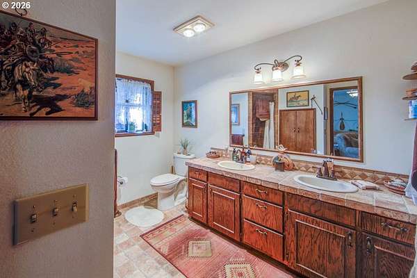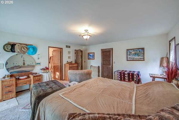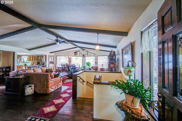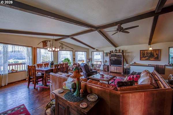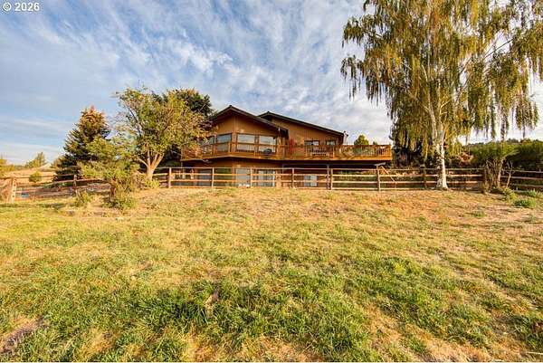 End-of-the-road privacy meets functionality on this 7.01-acre horse property with 2.6 acres of irrigation rights. Features include two cross-fenced pastures, a 720 sq ft barn with two stalls and hay storage, deer-fenced garden, and chicken coop. The 3,128 sq ft home offers 3 bedrooms and 3 bathrooms, hardwood floors, vaulted ceilings with beams, a woodstove, and a ducted heat pump. The primary suite includes a walk-in closet, tile shower, and outdoor access. The daylight basement provides additional living space with a second primary suite, sauna, and private exterior entrance-ideal for guests. Enjoy views of wildlife, lush pastures, and the John Day River from the large entertaining deck. Additional improvements include an 816 sq ft detached garage with bonus room and a 576 sq ft shop. Private setting, yet just minutes from town.