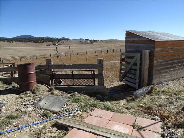 Off-grid living on over 10 acres in Hartsel, Colorado, with mountain views and hardly any neighbors. Manufactured home on a foundation with an enclosed south-facing atrium and a full basement, including bath! This well-loved family home needs some TLC - it's just waiting for your touch. Two wood stoves add supplemental heat to help keep things cozy. Fully fenced and cross-fenced acreage, several sheds and outbuildings including a chicken coop, and a huge 1280 sq ft steel quonset hut for all your equipment, implements, and toys. If you've been wanting an affordable home with outstanding homestead potential this is your spot.