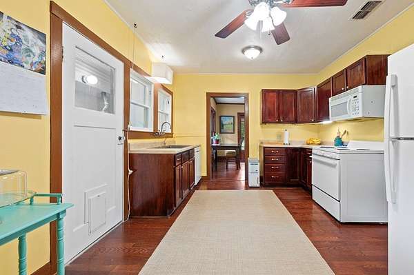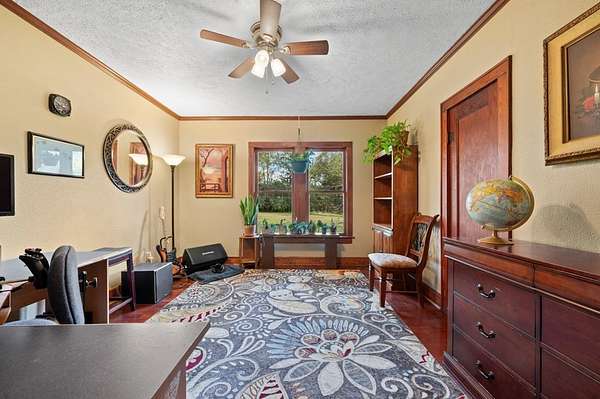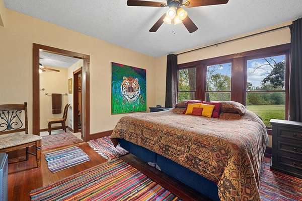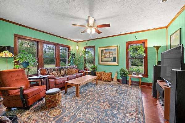 Don't miss out on this magical oasis just minutes from town, schools, and amenities! Enter through your private road(affectionately known as "the bat cave") and discover 5+ subdividable acres completely secluded by a lush, natural tree barrier. This charming three-bedroom, two-bath home has been lovingly updated with a new foundation, eco-compliant heating and cooling system, new roofing, new appliances, and a reverse osmosis water filtration system. Fresh paint inside and out, along with thoughtful remodeling, make this home move-in ready. Solidly built, spacious, comfortable, and peaceful it's the perfect place to call home. A 900-square-foot shop provides plenty of room for projects, storage, or hobbies. The grounds are graced with mature walnut, pecan, oak, and pine trees, along with a variety of flowering shrubs, vines, and bulbs that bloom year-round. A large, fenced garden space with trellises is ready to be planted, and the entire property has been recently surveyed.
