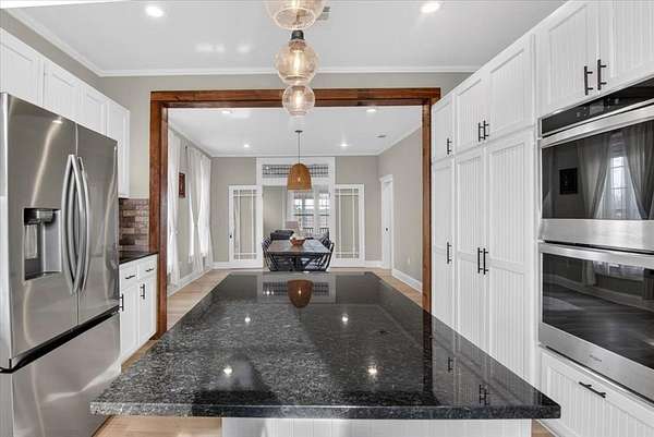 - Built-In Features, Built-In Wine Cooler, Decorative Lighting, Double Vanity, Granite Counters, Kitchen Island, Walk-In Closet(s)