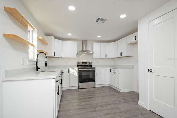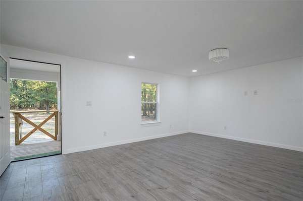Welcome home to this renovated 3-bedroom 2-bath home set on a scenic and private 4.05 acre parcel in High Springs. It features a fenced and gated front entry, partially cleared land, and a winding driveway. A large covered front porch welcomes you inside where you'll find a completely updated interior with all new flooring, fixtures, and windows. The ALL NEW sunlit kitchen is spacious and offers ample storage. The primary bedroom suite comes complete with a walk-in closet and a well-appointed bathroom. The guest bedrooms are bright and are served by a guest bath with custom tile work and double vanity. Step through the gliding barn with glass transoms into the dedicated laundry room with washer and dryer hookups. This park-like setting has abundant wildlife and is a convenient location to local springs, Santa Fe River and about 30 min to Lake City and Gainesville. Well, septic and electric are already connected. Call to schedule your tour today!