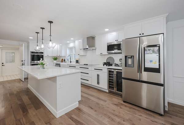 "Continuing to show, backup offers being accepted" This luxurious, 4 bedroom, 4 bath home has been renovated down to the studs, it blends luxurious comfort with functional amenities, close to major shopping centers,restaurants, Pawtuckaway State Park. It's close proximity to Portsmouth, sea coast, lakes region, ski resorts, and being in the prestigious Nottingham School District makes it very desirable. The first-floor en-suite offers a soaking tub, jet shower, marble floors, floor-to-ceiling tile, and fog-free LED lighting. Kitchen high end SMART appliances, full slab quartz backsplash & counters, double ovens, wine fridge, soft-close cabinets with pull-outs, farm sink, automatic faucet. The airy, open-concept is defined by 4" hardwood and marble floors, high end light fixtures, custom picture moldings & feature walls. The elegant living room, features a striking fireplace & flows effortlessly into a heated four season room with wood beams and a propane fireplace. The second floor offers 3 bedrooms, 2 full bathrooms & dual laundry facilities, one on each level. The exterior exudes elegance with its 4 stately posts, a double driveway, all-black new windows, grand stucco entry & grand iron double doors. Huge 2 car garage, leads into a mudroom & a pantry with a convertible freezer-to-refrigerator. Everything is new including hvac, plumbing, electrical and on-demand water heater and much more to mention.