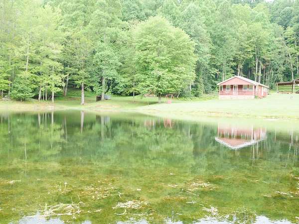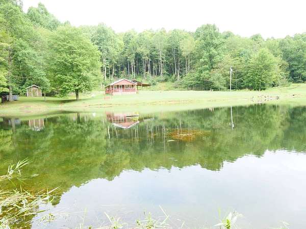 Homestead or on Golden Pond! The incredible pond in the mountains of West Virginia is the star of the show. There are fish there that have never seen a hook and geese serenely paddling across calm water. The cabin is perched above the pond with a large covered porch that has your name on it. Sit on the porch swing and let your troubles melt away. The living room features beautiful Poplar wood walls and oak hardwood flooring. The kitchen has lots of countertop space for canning and great cabinetry. There are lots of fruit trees and a prepared garden spot. The large outbuilding was used to store a camper and a pontoon boat but it would also be great for a barn. The lazy state maintained road has very little traffic but is in fantastic shape. Watch the Drone Video and call Old Fences Realty before it is too late.