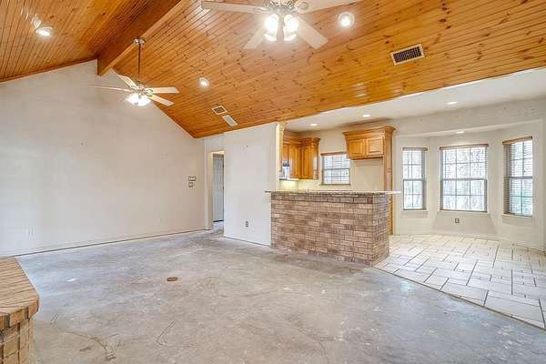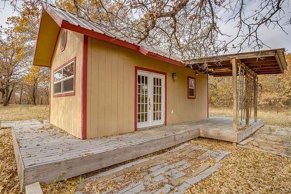 Granbury 7.306 Acres, Custom Brick Ranchette with Guest House, Greenhouse & No HOA. Escape to country living on this beautiful property & plenty of space for livestock. The main home offers 3 bedrooms, 2 baths, & 2 car garage with approx 1960 SQFT built in 2002. Detached 2 car garage includes a well house & room for a workbench. Main home has great bones & ready for your personal touch. Open concept living area features high ceilings, beadboard accents, brick wood-burning fireplace. Kitchen offers granite countertops, stainless steel appliances, custom cabinetry, opening to a cozy breakfast nook. Split-bedroom layout provides privacy, with a spacious primary suite featuring patio access, dual vanities, separate closets, & soaking tub with a walk-in shower. Guest house is a showstopper, complete with a kitchenette, full bath, loft, finished in a rustic cabin style with metal roof, front & back porches & window unit. Outdoor enthusiasts will love the oversized greenhouse with a wall of windows, water bib, & abundant space for gardening projects. Backyard is a gardener's paradise with shade trees & open space for entertaining. Property features include: New Roof, Brick & Iron Gate Entry, Heavily Treed with Mature Oaks, No HOA, Bring Your Cows, Horses, & Chickens. LOT dimensions: 251 x 1318 x 242 x 1323. Endless potential awaits, whether you're looking to create your own hobby farm, multi-generational retreat, or a serene rural escape.