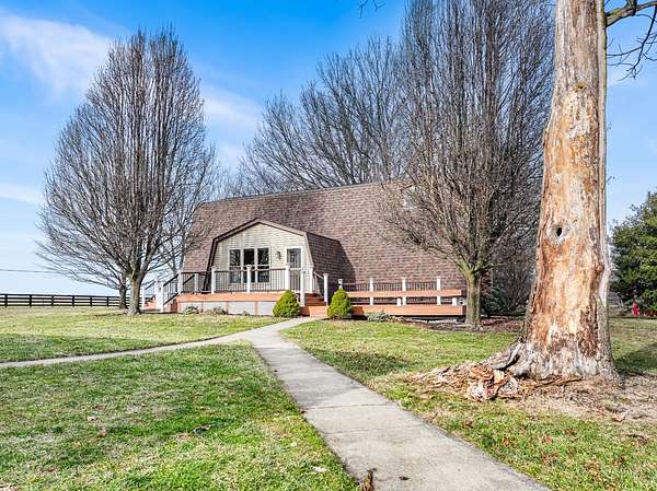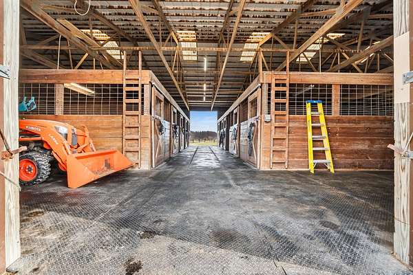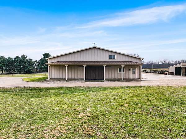 This exceptional 20.26-acre equestrian estate offers a rare blend of quality residential living and professional-grade horse facilities. Fully fenced and thoughtfully designed for serious equestrian use. The 2-brm (converted from 3), 2-bath home features hardwood floors, spacious living areas, abundant storage, two Trex decks, a finished basement office, and recent mechanical updates. Equestrian improvements include 16 stalls across multiple barns, a 60'x60' indoor arena with sand footing, concrete aisles, wash and grooming stalls, hay storage for approx. 600 bales, and a professionally installed 5/8-mile training track with advanced drainage. Additional amenities include multiple pastures, automated gate, solar electric fencing, stocked pond, workshops, and whole-property generator. A truly turnkey equestrian property offering scale, infrastructure, and versatility rarely found.