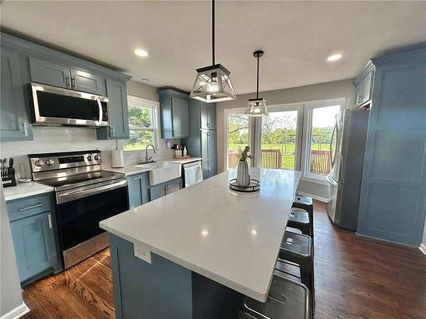 Spacious, stylish, and thoughtfully updated - this 5-bedroom, 4-bathroom home offers over 3,000 sq ft of flexible living space on 4 beautiful acres, complete with a 30*60 insulated shop, small pond, and direct highway access (no gravel roads!). Inside, you'll find a blend of functionality and comfort designed to fit a variety of lifestyles: - Two generous living areas provide space for relaxation, entertaining, or multi-generational living - A dedicated home office makes remote work easy - Formal dining room perfect for hosting holidays or daily family meals - Updated kitchen with modern finishes and all appliances included - Five true bedrooms and four full bathrooms, including a private primary suite with walk-in closet Downstairs features its own private-access suite with: - Bedroom, full bathroom, kitchenette, and full laundry room - Ideal for guests, extended family, or private living quarters Enjoy added convenience with two laundry areas - one located in the primary suite's walk-in closet with a stackable washer/dryer, and the other in the basement with full-size units. All appliances stay, including both sets of washer/dryers and kitchenette appliances. Step outside to your own private escape: - 4 usable acres w/ mature trees & open space - Small pond adds peaceful charm - 30*60 insulated shop w/ endless potential for hobbies, equipment, or a home-based business - Paved access right off State Route 7 - easy commute to Harrisonville, I-49, and nearby amenities Key Features: - 5 Bedrooms | 4 Bathrooms | 3,040 Sq Ft - 2 Living Rooms + Office + Formal Dining Room - Private Entry to Finished Lower-Level Suite - 2 Laundry Areas - Kitchenette in Basement - 4 Acres w/ Pond - 30*60 Insulated Shop - No Gravel - Direct Highway Access - All Appliances Included This home is a rare combination of space, privacy, updates, and location - perfect for growing families, home-based professionals, or anyone seeking extra room to live, work, and relax.