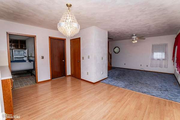 Est $944/moCome to the country close to town with 3 Bedroom, 1 1/2 bath home and buildings!!! Spacious main level with large country kitchen with center island, formal dining, large living room, space for bedroom which could be beauty salon, 3 season screened in porch, recreation room with kitchenette and an enclosed wrap around porch. In the upper level are 2 more bedrooms. A small elevator accommodates transport to all 3 levels. Updates include new open style kitchen cabinets, island, roof approx. 5 years ago and home is well insulated. Call today to check out this great acreage with a beautiful view and wildlife!!