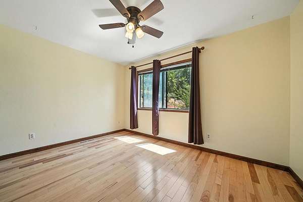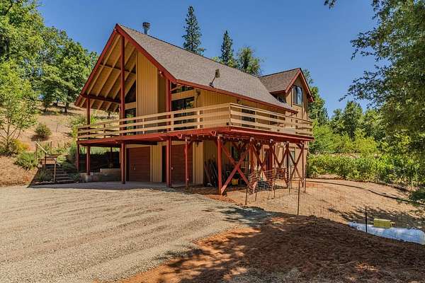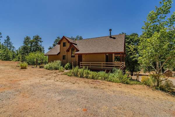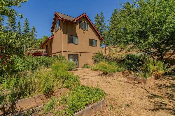 This picturesque mountain home is the homesteaders dream property! If you have ever dreamed of living a more self sufficient life style this would be a great opportunity for you! This property offers a large garden area with lots of water storage, raised beds and organic soil as well as 2 pasture areas for your livestock! Beautiful Chalet style home primary bedroom and bathroom are upstairs with a seating area overlooking the living room. Huge deck that wraps around 3 sides of the home and can be accessed from the front door as well as the dining/living room. Deck also offers a claw foot tub for your bathing pleasure. The living/dining room offer spacious living and are open to the kitchen. There are 2 bedrooms and a full bathroom on this level as well. The garage is in the basement area with laundry facilities and a walk out family room with extra pantry closet. There are numerous fruit trees and 2 small pastures waiting for your livestock. There is a second driveway with access to the garden area for easy delivery of soil etc. Lots of room for kids to run or peace and quiet too! Call to see this beautiful property today!