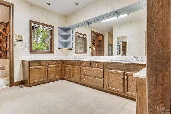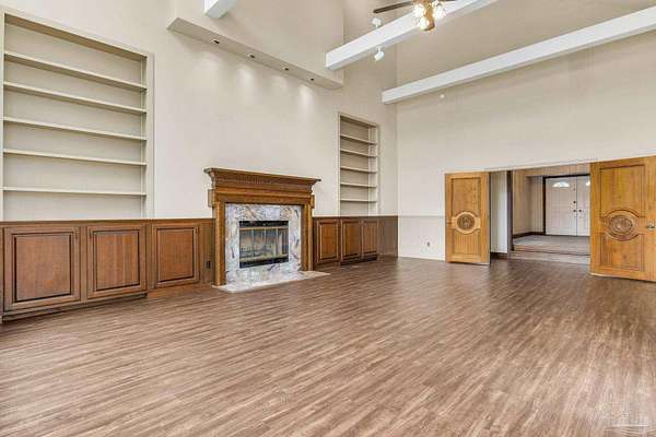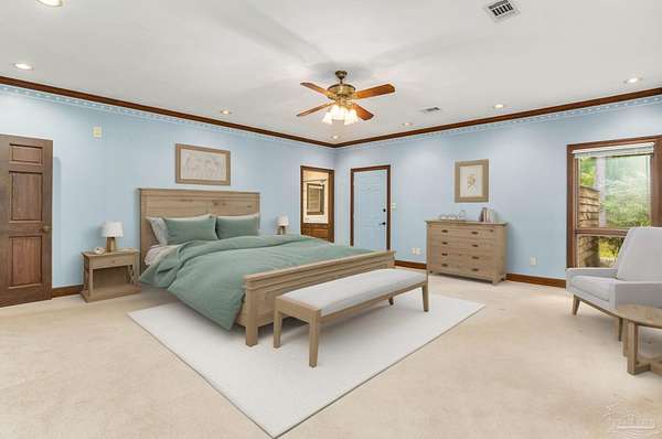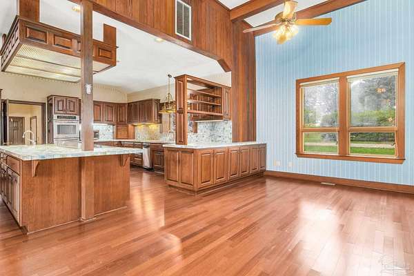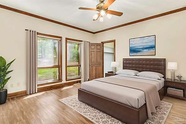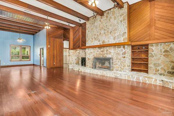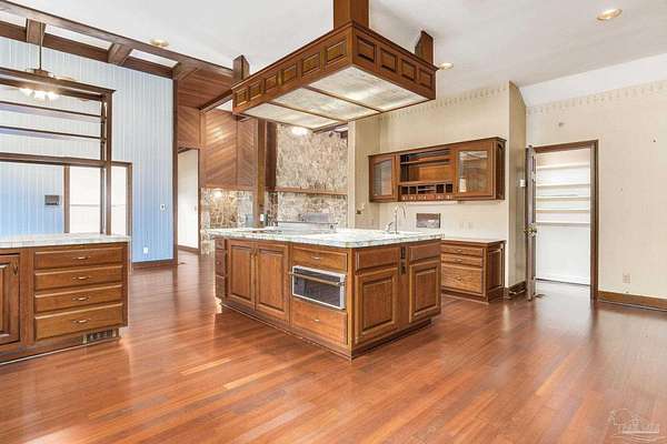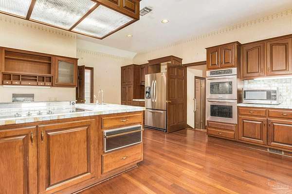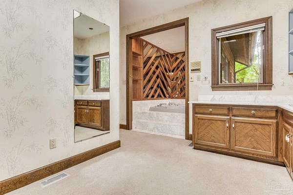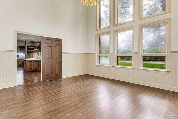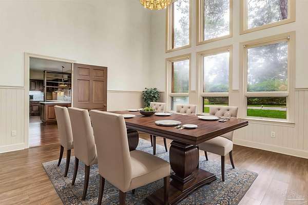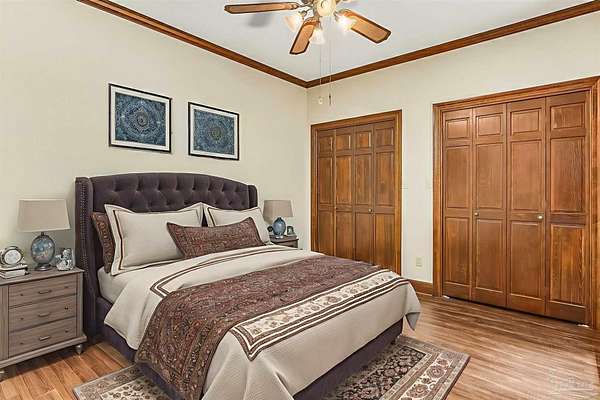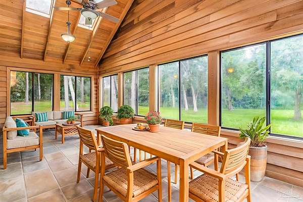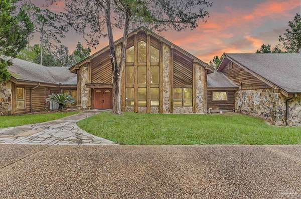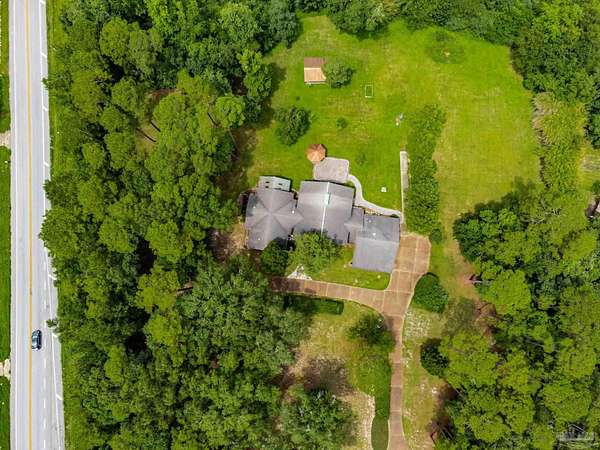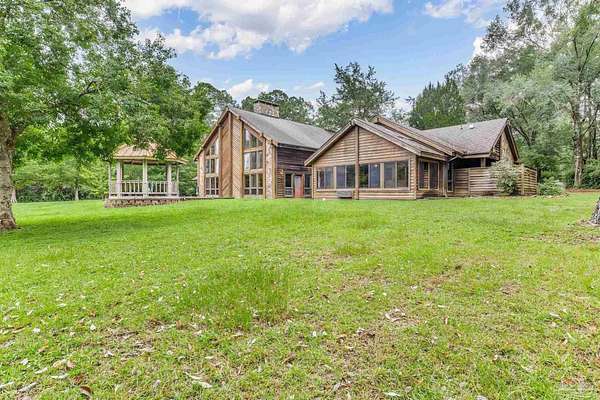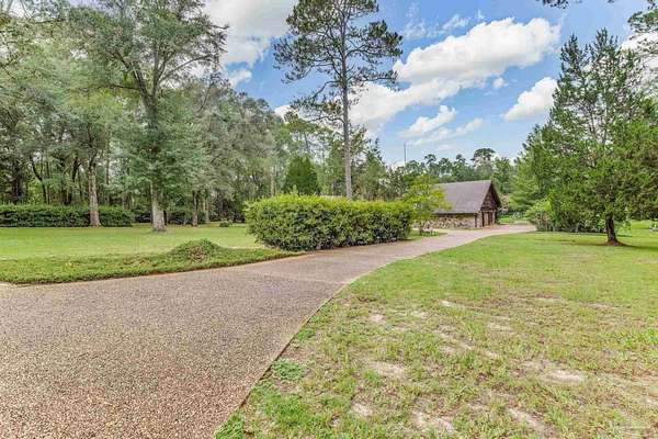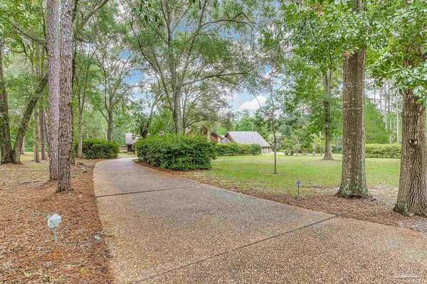 This impressive executive estate, set on 6.23 acres offers a rare opportunity to craft a luxurious custom residence in one of the area's most desirable locations. The acreage easily allows you to construct an auxiliary living space for the ultimate compound be it a mother-in-law suite or dream workshop. With over 4,700 square feet of living space, the home presents exceptional scale & flexibility, featuring multiple living areas, a dramatic entryway, & striking architectural details such as soaring ceilings , expansive windows, & elegant moldings. The layout includes a generous primary suite with its own outdoor sitting area, an en-suite bath, & a private dry sauna, providing the foundation for a true retreat. A fully enclosed Florida room offers additional living space & beautiful views of the surrounding property. The kitchen is ready for a designer's touch, offering ample space to create a chef-inspired gathering place complete with custom cabinetry, high-end appliances, & a large center island. Three additional bedrooms, a designated office & a full sewing room gives this home the potential for a five-bedroom home. A below ground room off the garage has been used as a safe room, wine cellar & gun safe. The sprawling acreage provides privacy and endless possibilities from a pool & entertaining patios to gardens or future outbuildings. The side entry garage with 400-amp service gives ample space for boat or RV storage. Though tucked away in a peaceful setting, the property is conveniently located just five minutes from I-10 and 15 minutes to downtown, with the rapidly growing Nine Mile Road corridor nearby for easy access to shops & dining. This estate is ideal for those seeking a substantial property with room to reimagine & personalize. With thoughtful updates & vision, this residence has the potential to become a one-of-a-kind showcase of refined living. Now is the perfect time to explore the possibilities & make this remarkable property your own.