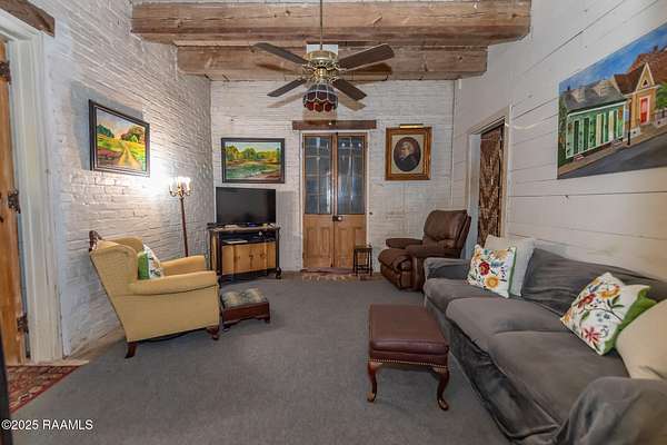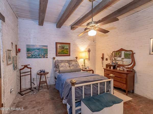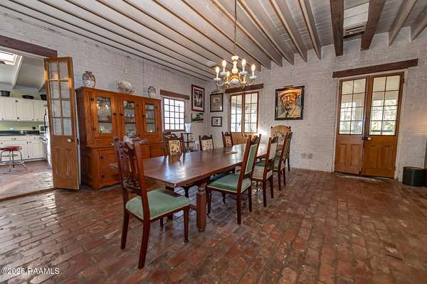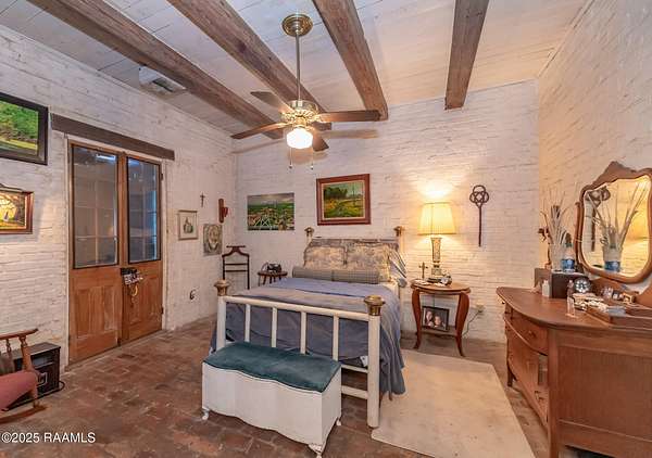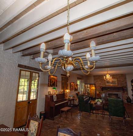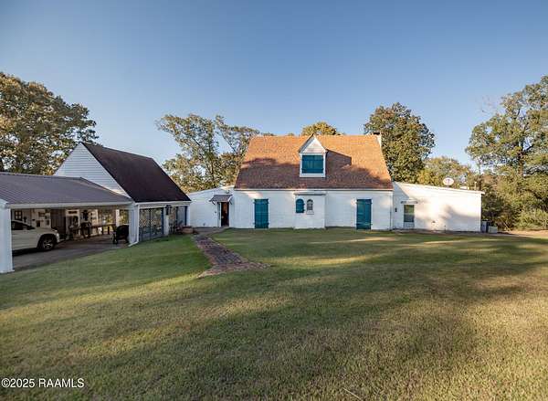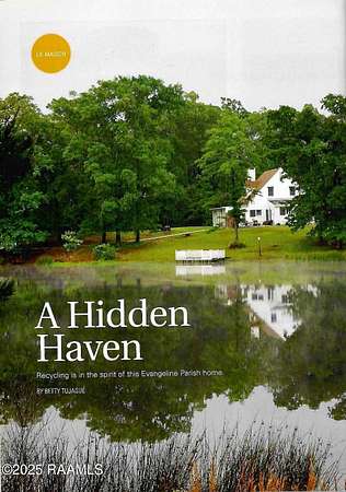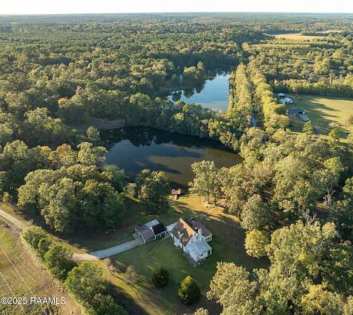Inspired by the timeless architecture of A. Hays Town, this exquisite Acadian-style home blends classic Southern charm with refined craftsmanship. Featured in Acadiana Profile magazine in 2011 and described as ''A Hidden Haven,'' this property perfectly captures the elegance and warmth of traditional Louisiana living.Set on 51.95 picturesque acres that backs up to Chicot State Park, this estate embodies classic Louisiana architecture with modern comfort -- a truly rare and remarkable retreat.The kitchen is beautifully appointed with granite countertops, commercial appliances and a timeless design that blends form and function. The spacious living room boasts a large fireplace that anchors the space, while a chandelier and generous natural light create a welcoming atmosphere ideal for entertaining or quiet evenings at home. The home offers 5 bedrooms and 3 bathrooms, along with a formal dining room, library, sunroom and a large utility room for everyday convenience. The brick & hardwood floors and wood beam ceilings throughout add character and depth to every room. Additionally, this home has double brick wall construction on the lower level showcasing its quality and authentic Acadian character.Outdoor amenities include an outdoor kitchen built in 1876, a 2-car carport with storage above, and attached storage for added flexibility. A barn, 3-stall stable, and a 5-acre pond make this property ideal for country living.Conveniently located just 4 miles from Interstate 49, this property offers easy access to nearby cities while maintaining a peaceful rural setting. It's approximately 39 minutes from Alexandria and 50 minutes from Lafayette, providing a perfect balance of country living and accessibility to shopping, dining, and entertainment.