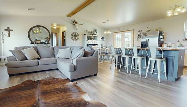 Enjoy peaceful country living with this inviting 3-bedroom, 2-bath brick home situated on 10 scenic acres. The property includes a pond, open pasture, and a large tree house, creating a unique outdoor space for both relaxation and recreation. Inside, the home offers an open-concept layout that blends comfort and functionality. Recent updates include updated vinyl flooring and newer kitchen cabinets. The kitchen is designed for everyday living with laminate countertops that have a granite-look finish, an electric range, dishwasher, and a large island with bar seating. The dining area is highlighted by French doors leading to the back patio, providing an easy flow for indoor and outdoor entertaining. The split floor plan provides privacy, with the primary suite separate from the additional bedrooms. Both bathrooms are spacious and practical, making the home ideal for families or anyone looking for a comfortable layout. The covered front porch and back patio provide relaxing spaces to enjoy the outdoors, while the 10 acres with pond and open pasture are perfect for livestock, gardening, or future expansion such as adding a shop or barn. The large tree house adds character and fun, making this property truly one of a kind. This home offers the best of country living in a quiet setting while still being a short drive from town conveniences. With updated features, generous acreage, and unique outdoor amenities, it is a rare opportunity to own a move-in ready home with land in the Tupelo area.